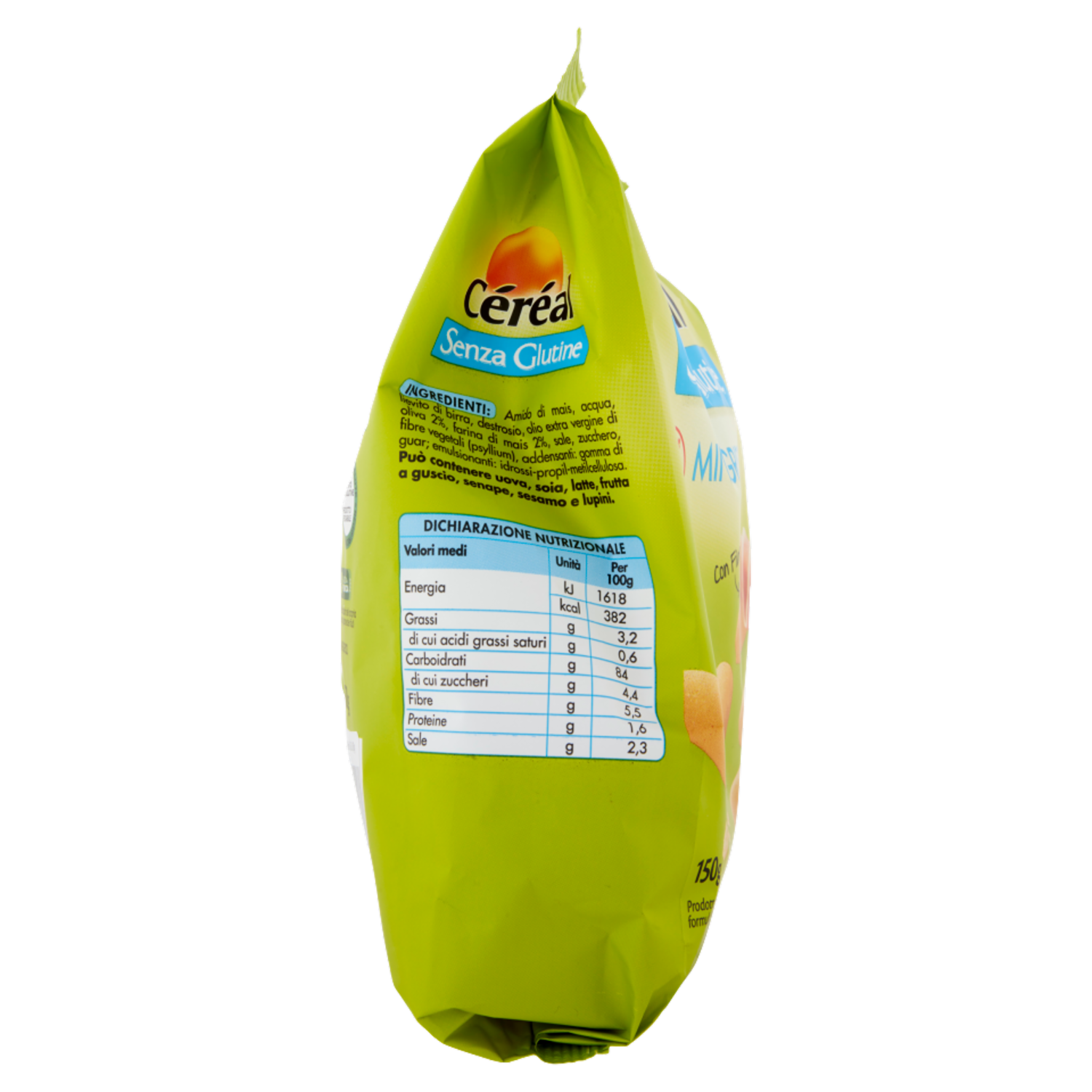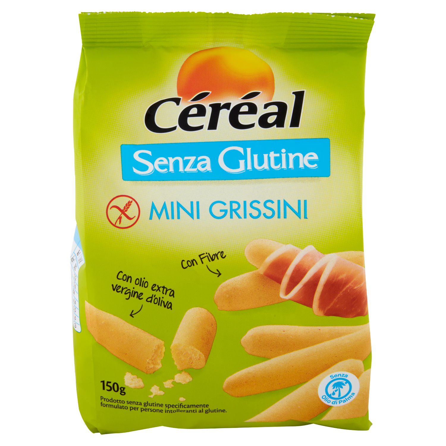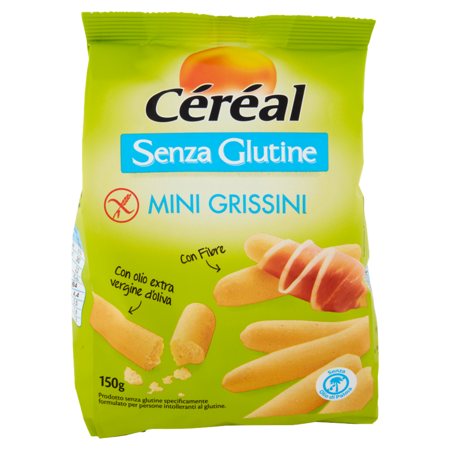 Si consiglia di utilizzare il prodotto nell'ambito di una dieta varia ed equilibrata ed uno stile di vita sano. Céréal si impegna per voi I Mini Grissini Céréal sono prodotti con la massima cura: - Senza glutine - Con fibre - Con olio extra vergine d'oliva - Senza olio di palma
