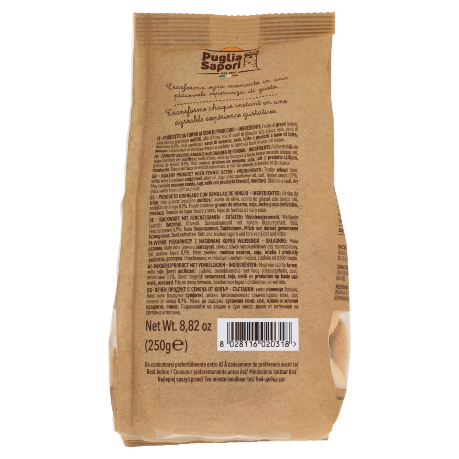 Può contenere semi di sesamo, soia, latte e prodotti a base di latte