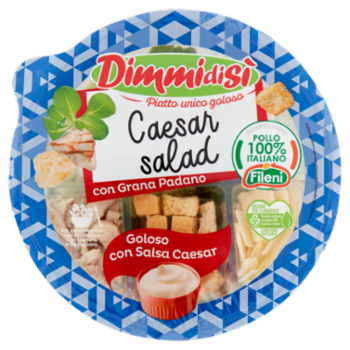 Condimento: salsa Caesar (acqua, olio di semi di girasole, zucchero, aceto di vino (contiene solfiti), latte parzialmente scremato, sale, addensante: gomma di xantano, aromi, spezie, conservante: metabisolfito di potassio)