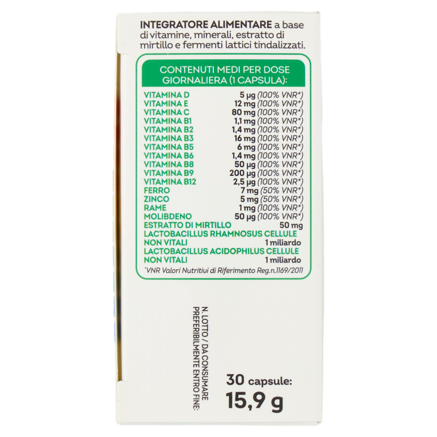Avvertenze: non superare le dosi consigliate. Conservare in luogo fresco e asciutto. Tenere fuori dalla portata dei bambini al di sotto dei 3 anni. Gli integratori non vanno intesi quali sostituti di una dieta variata, equilibrata e di un sano stile di vita.