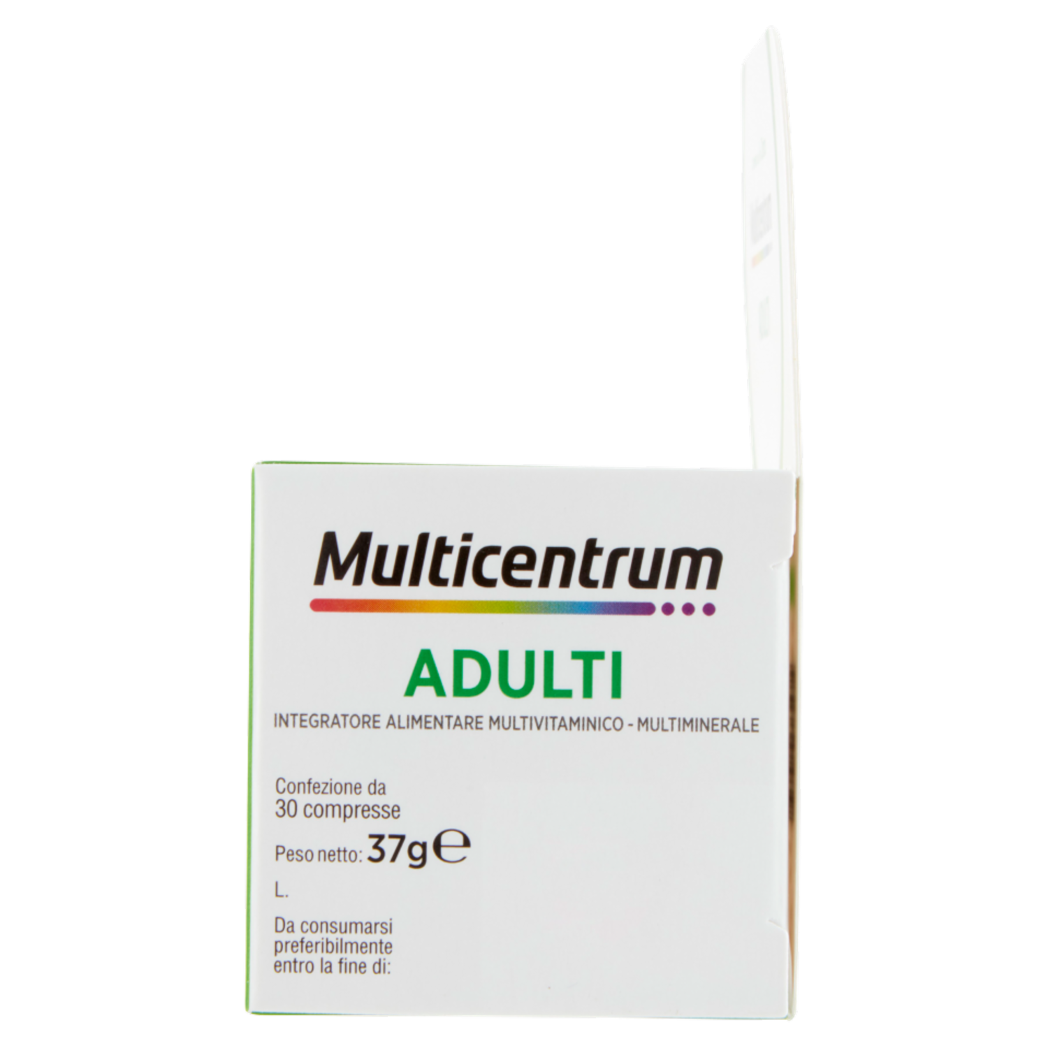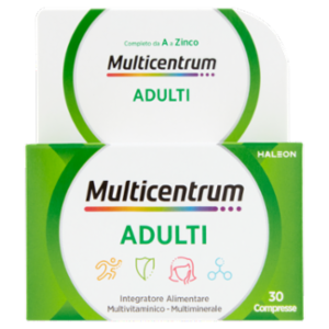 Senza glutine Senza zuccheri Specificatamente formulato per adulti Con le Vitamine B6 e B12 che contribuiscono alla riduzione di stanchezza e fatica Con Vitamine B6, B12 e C che contribuiscono alla normale funzione del sistema immunitario Con Vitamine A, B2 e Biotina che contribuiscono al mantenimento di una pelle sana Con Vitamine C, E e Selenio che contribuiscono alla protezione delle cellule dallo stress ossidativo Multicentrum Adulti è un integratore multivitaminico-multiminerale completo, formulato per adulti