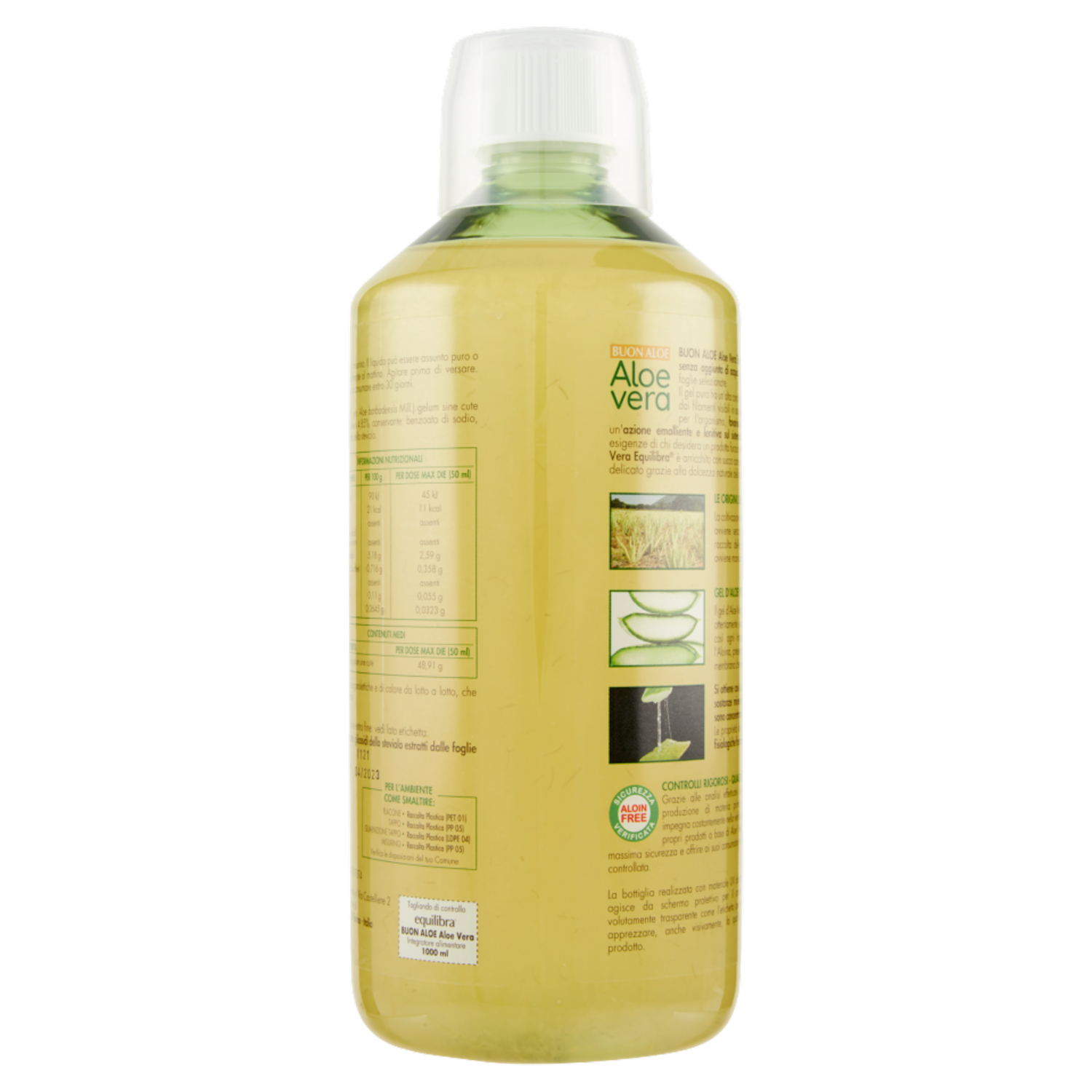 Buon Aloe Aloe Vera Equilibra contiene pura polpa al 100% senza aggiunta di acqua (gelum sine cute), ottenuta fresca da foglie selezionate. Il gel puro ha un'alta concentrazione di polisaccaridi rappresentati dai filamenti visibili in sospensione. Ricca di proprietà benefiche per l'organismo, favorisce le funzioni depurative e possiede un'azione emolliente e lenitiva sul sistema digerente. Per venire incontro alle esigenze di chi desidera un prodotto funzionale dall'ottimo gusto, Buon Aloe Aloe Vera Equilibra è arricchito con succo concentrato di Pesca per un sapore fresco e delicato grazie alla dolcezza naturale della frutta. Le origini dell'Aloe Vera Equilibra La coltivazione dell'Aloe Vera utilizzata da Equilibra avviene senza utilizzo di sostanze chimiche e la raccolta delle foglie, così come la lavorazione, avviene manualmente. Gel d'Aloe puro Il gel d'Aloe Vera presente nel cuore di ogni foglia viene attentamente separato dalla parte esterna eliminando così ogni impurezza, come gli Idrossiantraceni e l'Aloina, presenti nella parte verde della foglia e nella membrana che separa il gel dalla parte verde cerosa. Si ottiene così un gel puro, contenente polisaccaridi e sostanze minerali, con una polpa consistente, in cui sono concentrate le sostanze benefiche dell'Aloe Vera. Le proprietà del gel d'Aloe sono note per favorire le fisiologiche funzioni depurative dell'organismo. Aloin free - Sicurezza verificata Controlli rigorosi - Qualità verificata Grazie alle analisi effettuate su ogni lotto di produzione di materia prima, Equilibra si impegna costantemente nella verifica e controllo dei propri prodotti a base di Aloe Vera per garantire massima sicurezza e offrire ai suoi consumatori la miglior qualità controllata. La bottiglia realizzata con materiale UV absorber, agisce da schermo protettivo per il contenuto volutamente trasparente come l'etichetta per poter apprezzare, anche visivamente, la qualità del prodotto.