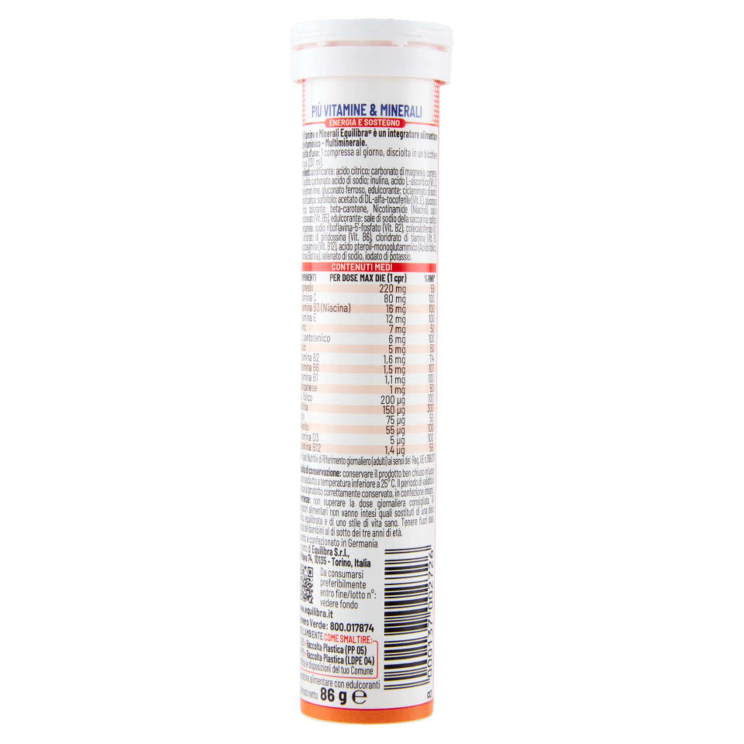 Più Vitamine e Minerali Equilibra è un integratore alimentare Multivitaminico - Multiminerale.