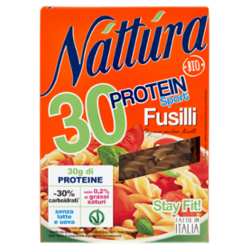 I Fusilli Proteici Náttúra da Agricoltura Biologica sono ricchi di proteine e hanno il 30% in meno di carboidrati*, ideali per l'alimentazione di atleti e sportivi. Adatti anche per chi vuole seguire una dieta proteica costituita solo da proteine vegetali. Scopri il piacere di un primo piatto pronto in 12-14 minuti con solo 0,2 g di grassi saturi. *rispetto alla media della paste di semola di grano duro - Fonte Banca Dati Crea Tabelle di composizione degli alimenti (nut.entecrea.it)