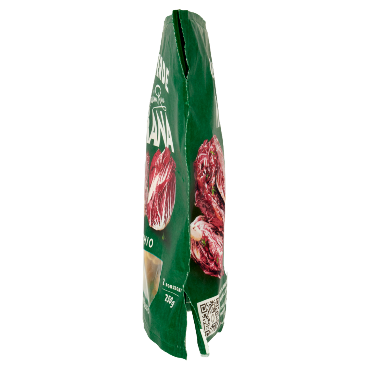 Ripieno 60%: radicchio 38%, ricotta (siero di latte, latte, sale), siero di latte in polvere, olio di girasole, pangrattato (farina di grano tenero, acqua, sale, lievito), formaggio mascarpone, formaggio Parmigiano Reggiano DOP*, formaggio mozzarella, fibre vegetali (di mais e patata), lattosio, sale, aromi naturali, amidi, cipolla tostata