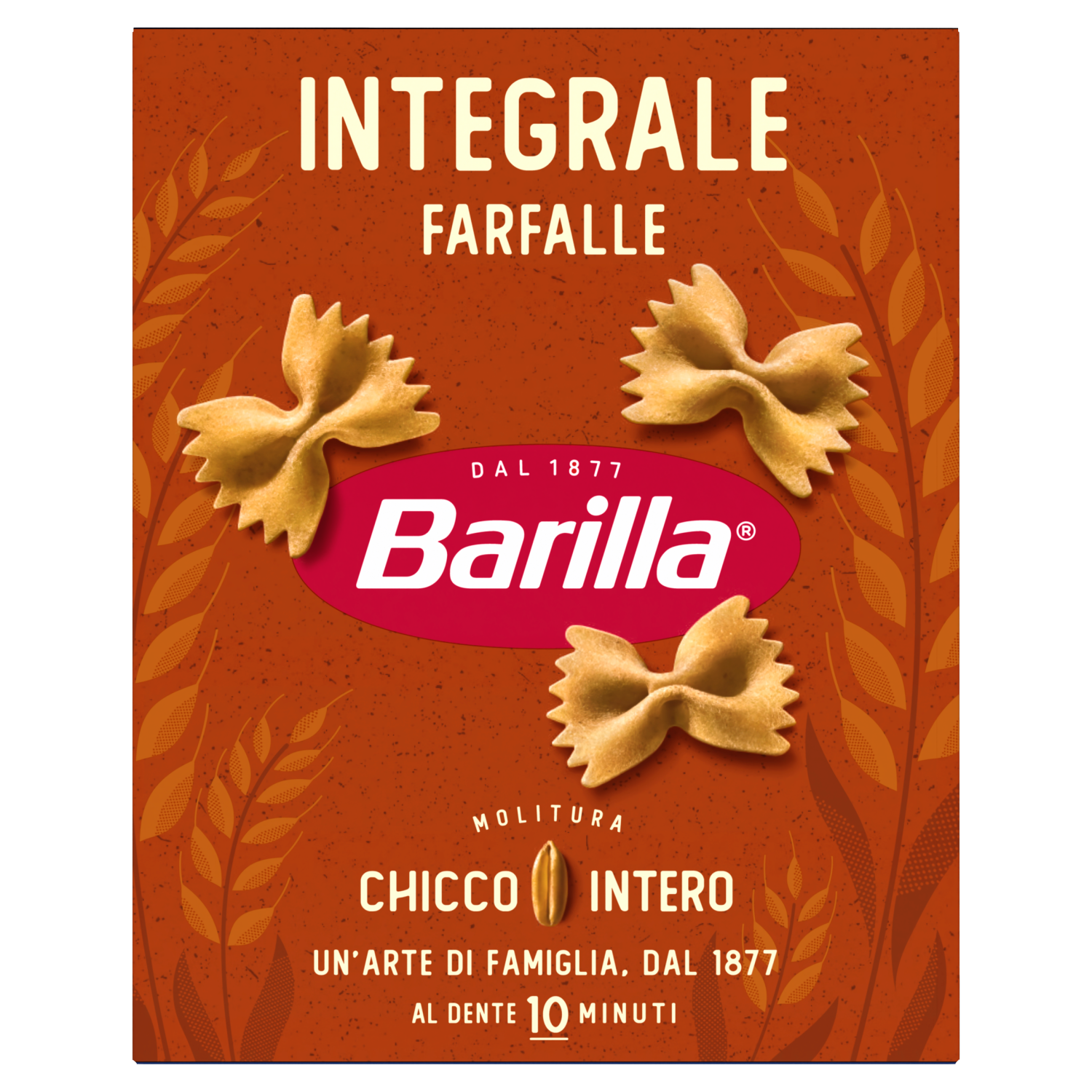 Barilla Dal 1877 Gusto per la vita Bontà e benessere si incontrano nella pasta Integrale Barilla: fonte di fibre, sempre al dente, dal gusto ricco, un'autentica gioia per il palato. Ideale per chi cerca vitalità insieme al piacere del buon cibo. Tutta la ricchezza del chicco Nuova molitura Barilla - Chicco intero La Molitura Chicco Intero è il nuovo processo di macinazione Barilla che permette di conservare la ricchezza nutrizionale e il sapore pieno dei grani selezionati 100% italiani. Un gesto d'amore Grazie alla Molitura Chicco Intero riduciamo il consumo di acqua e le emissioni di anidride carbonica del nostro processo di macinazione. Rinunciando alla finestra nella confezione diamo il nostro contributo per un futuro con meno plastica. Scopri di più su barilla.com/box Per noi la qualità è una tradizione di famiglia dal 1877. www.barilla.it