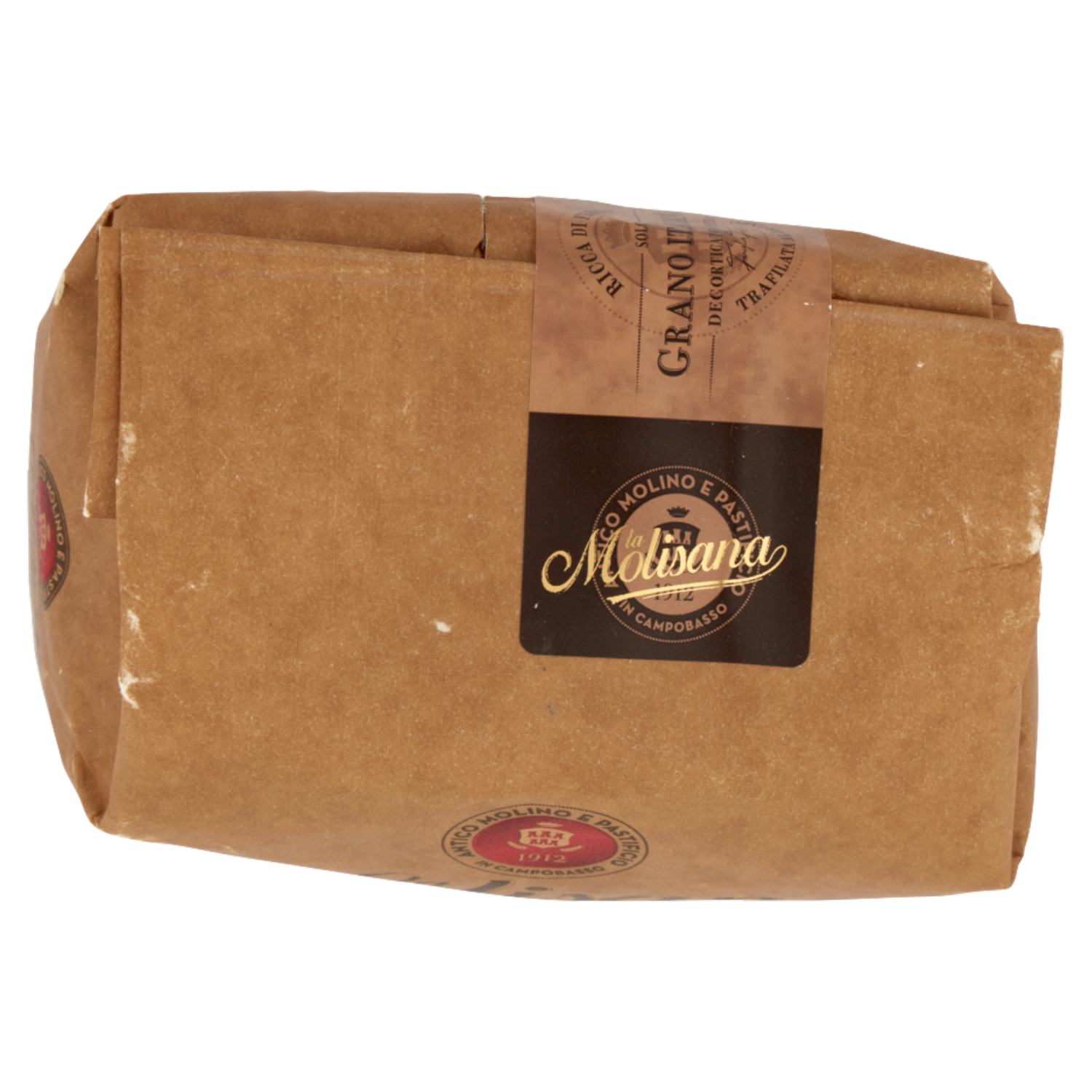 La Molisana Antico Molino e Pastificio in Campobasso 1912 Famiglia Ferro Azienda 100% italiana da filiera integrata Fondata nel 1912 da una famiglia di imprenditori italiani, interamente di proprietà italiana. Il grano Utilizziamo solo grano coltivato in Molise, Abruzzo, Puglia, Lazio e Marche, regioni da sempre vocate alla produzione di grano duro di alta qualità. Il molino Maciniamo da cinque generazioni il miglior grano, lo decortichiamo a pietra per produrre semole più sicure dal punto di vista igienico-sanitario. Il pastificio Trafiliamo al bronzo per ottenere una pasta ruvida e tenace con un'eccellente tenuta in cottura. L'acqua Impastiamo le nostre semole con acqua pura, iposodica con caratteristiche oligominerali delle sorgenti del Matese. Lifegate impatto zero CO₂ La Molisana partecipa al progetto Impatto Zero di LifeGate grazie al quale sono state calcolate, ridotte e compensate le emissioni di CO2 prodotte da questa confezione tramite l'acquisto di crediti di carbonio generati dalla creazione e tutela di foreste in crescita in Madagascar, Brasile e Italia. Ricca di fibre Acqua cristallina di sorgente Mugnai da cinque generazioni