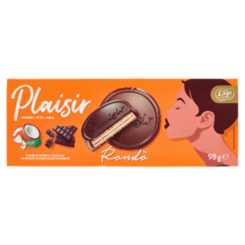 Plaisir Mordi, vivi, ama La nuova pasticceria Plaisir è l'ideale per concludere il pasto o la giornata con un momento di autentico piacere. Mordi la golosità, vivi il piacere, ama il sapore audace e ricercato. Ogni incontro con Plaisir ti rapisce e ti incanta. Quale piacere ti concedi oggi? Rondò è golosità a tutto tondo. Il corposo guscio di cioccolato fondente rivela tre strati di friabili wafer farciti da una morbida crema al cocco, vellutata al palato e piacevolmente rinfrescante. Il piacere è avvolgente. Wafer calde sottili e friabili Cioccolato fondente per un guscio croccante Cocco con rapè di cocco nella crema Plaisir è un piacere da gustare quando vuoi! Ideale a fine pasto Delizioso dopo cena Ottimo per la serata Scopri di più: Seguici su Facebook, Instagram plaisirpasticceria.it