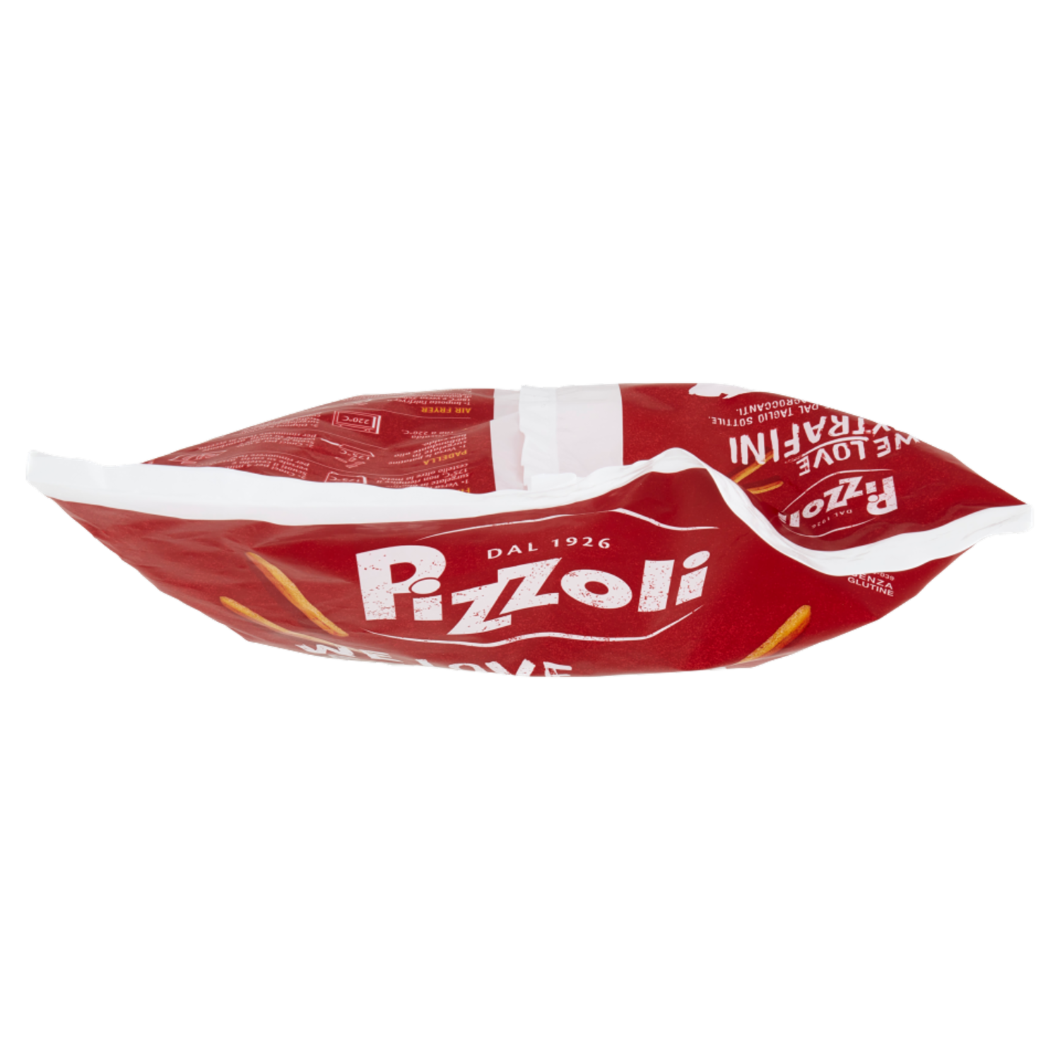 Friggitrice 1. Versa le patatine surgelate in olio a 175°C, non riempire il cestello oltre la metà. 2. Cuoci per 4 min. Scuoti il cestello e versale su carta assorbente per rimuovere l'olio in eccesso. Padella 1. Versa le patatine surgelate in abbondante olio ben caldo. 2. Cuoci per 4 min. Scola le patatine e versale su carta assorbente per rimuovere l'olio in eccesso. Forno 1. Preriscalda il forno a 220°C. 2. Disponi le patatine surgelate su un solo strato della teglia e cuoci per 10-12 min in forno ventilato (statico: 13-15 min). Air fryer 1. Imposta l'airfryer a 180°C e versa 250g di patatine surgelate all'interno del contenitore. 2. Cuoci le patatine per 10-11 minuti. Ti consigliamo di non cuocere troppo il prodotto ma solo fino a ottenere un colore dorato e la giusta croccantezza. I tempi possono variare in funzione delle caratteristiche degli elettrodomestici. Se cuoci piccoli quantitativi, riduci i tempi di cottura. Per maggiori informazioni, consulta il nostro sito: www.pizzoli.it/buoniconsigli