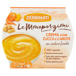 Crema con zucca e carote Solo olio extravergine di oliva italiano 2%