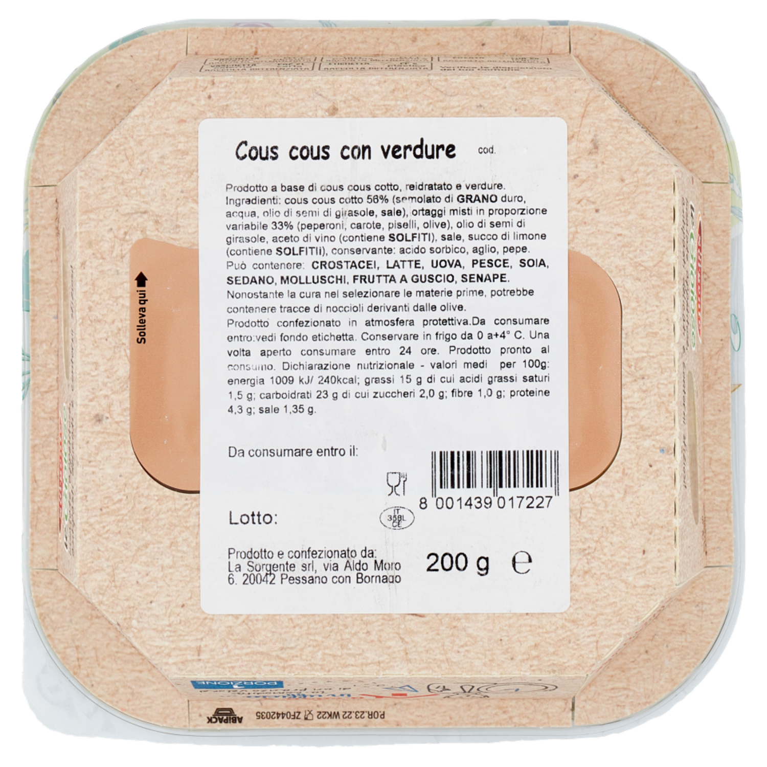 Prodotto e confezionato da: La Sorgente srl via Aldo Moro 6 20042 Pessano con Bornago