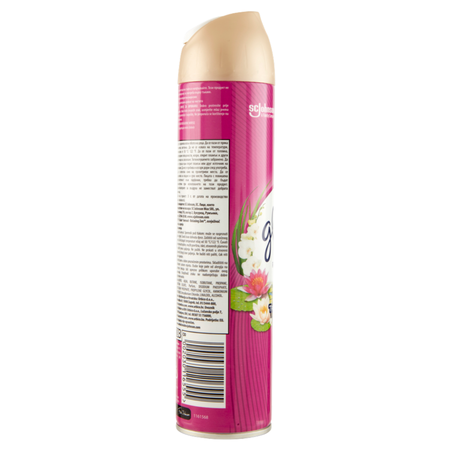 UFI: V0R3-E3ND-D006-4TKG Glade Aerosol - Relaxing Zen Attenzione Aerosol infiammabile. Contenitore pressurizzato: può scoppiare se riscaldato. Tenere fuori dalla portata dei bambini. Proteggere dai raggi solari. Non esporre a temperature superiori a 50 °C/ 122 °F. Tenere lontano da fonti di calore, superfici calde, scintille, fiamme libere o altre fonti di accensione. Non fumare. Non vaporizzare su una fiamma libera o altra fonte di accensione. Non perforare né bruciare, neppure dopo l'uso. Usare soltanto in luogo ben ventilato. Conservare in luogo fresco e asciutto. Le persone sensibili all'uso di profumo dovranno usare questo prodotto con cautela. I deodoranti per l'ambiente non sostituiscono le buone pratiche igieniche.