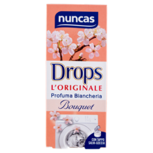 Il futuro Il nuovo packaging di Drops L'Originale Profuma Biancheria ha un design personalizzato e studiato per essere pratico e maneggevole: il flacone in plastica 100% riciclata sostituisce il vetro e l'innovativo tappo salva-goccia permetterà di vivere la migliore esperienza di dosaggio senza sprechi. Flacone 100% Plastica Riciclata L'originale Drops Profuma Biancheria nasce negli anni '70 da un'idea unica e innovativa del Cav. Salvatore Cassata. É il primo profumatore liquido per bucato in lavatrice che, ancora oggi, con le sue preziose gocce regala ai capi una personalità esclusiva e un'emozione avvolgente che dura nel tempo. Icona di stile ed eleganza, Drops L'Originale Profuma Biancheria è disponibile in 5 pregiate profumazioni, amabili e incantevoli: Classic, Bouquet, Lavanda, Flowers e Sogno, l'ultima nata per celebrare i 100 anni di Nuncas. Drops Bouquet, nobile e delicato, dona al bucato la sensazione di una distesa di petali bianchi.