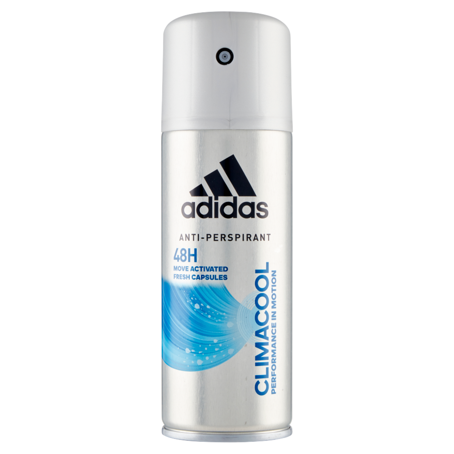 Deodorante anti-traspirante adidas Climacool. Performance in movimento. Una formula unica con una tecnologia avanzata con particelle refrigeranti attivate dal movimento del corpo, così l'efficacia è maggiore quanto più ti muovi. Anti-macchie bianche.