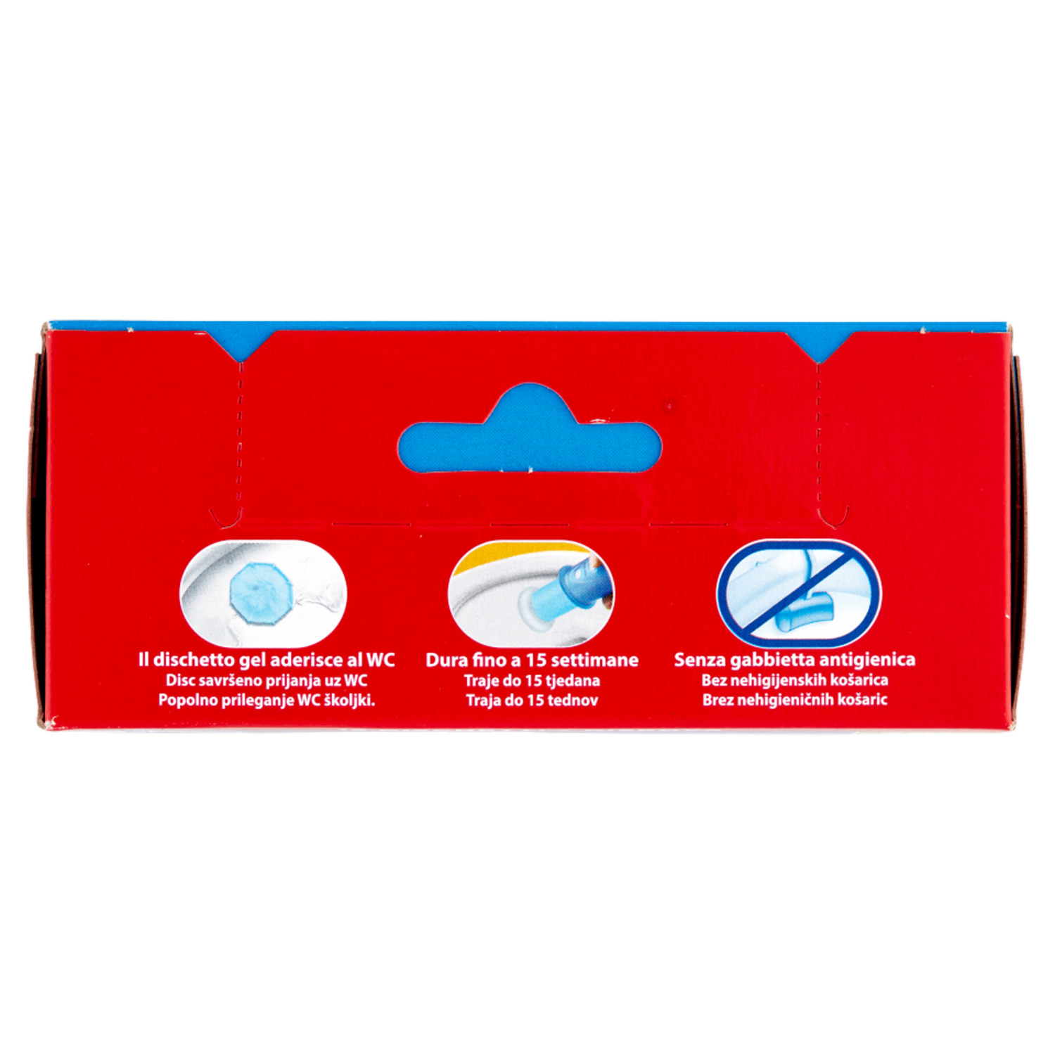 Il dischetto gel aderisce al WC Dura fino a 15 settimane Senza gabbietta antigienica