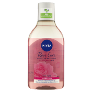 Nivea Rose Care Acqua Micellare con Oli & Acqua di Rose Bio: Rimuove il trucco waterproof e deterge in profondità la pelle, senza seccarla. Risultati: la pelle è detersa, liscia e morbida. Non lascia residui, per una pelle libera di respirare. Bottiglia realizzata con il 96% di plastica riciclata - esclusi l'etichetta e il tappo. Compatibilità cutanea dermatologicamente ed oftalmologicamente comprovata