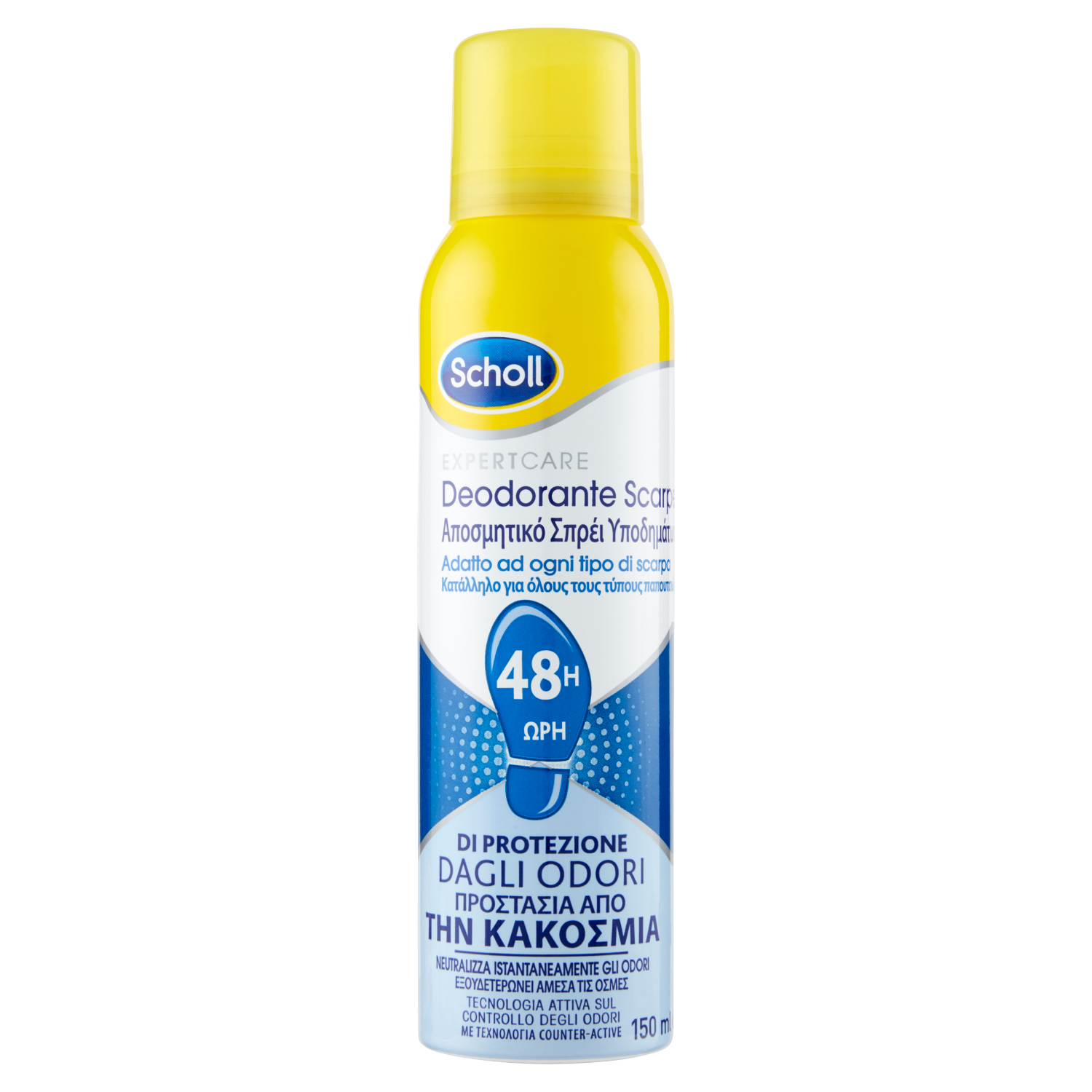 Perché scegliere il Deodorante ExpertCare Scholl? Il deodorante per scarpe Scholl ExpertCare è sviluppato con una tecnologia attiva sul controllo degli odori che: - Neutralizza istantaneamente gli odori - Dona protezione ai piedi dagli odori per 48h Togli le tue scarpe con disinvoltura grazie al deodorante spray ExpertCare di Scholl, formulato per dare ai tuoi piedi una sensazione di freschezza il più a lungo possibile*. *Neutralizza gli odori per 48h