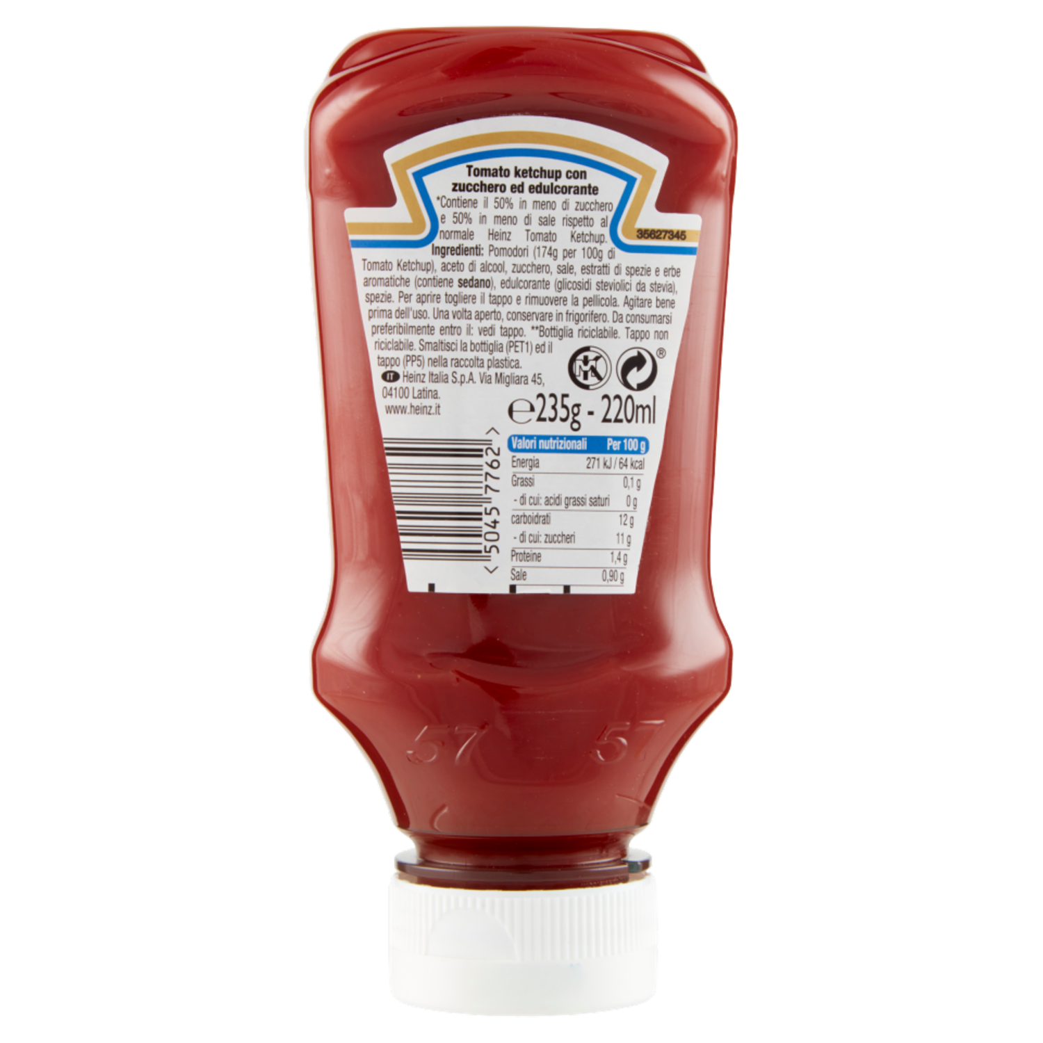 *Contiene il 50% in meno di zucchero e 50% in meno di sale rispetto al normale Heinz Tomato Ketchup