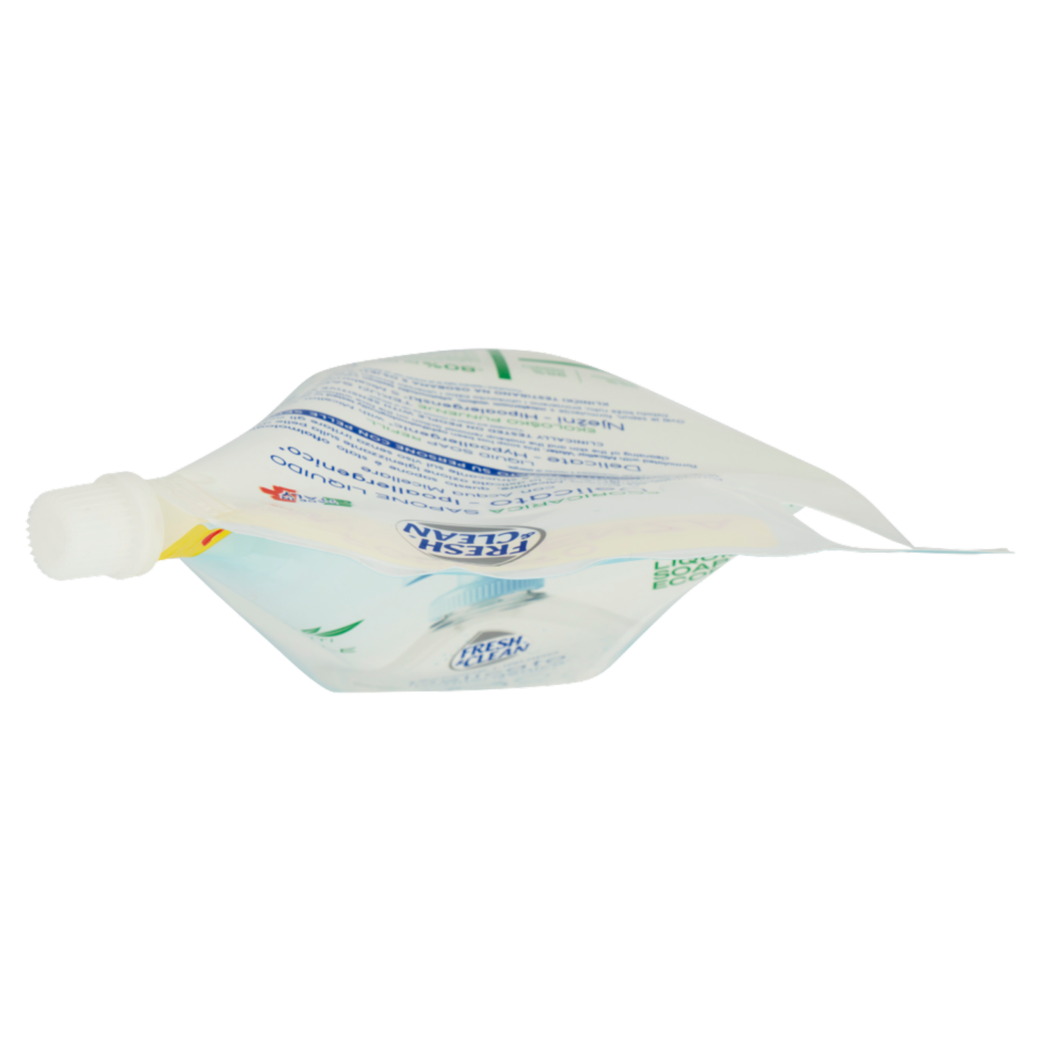 ** L'Ecoricarica Fresh & Clean da 1000 ml utilizza oltre l'80% di plastica in meno, rispetto a 4 flaconi con dispenser che va a ricaricare. Quando è vuota si appiattisce totalmente, con un ingombro minimo.