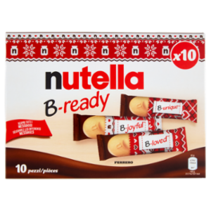 Cialda di pane di tipo "00" a forma di baguette, con farcitura di crema alle nocciole e al cacao Nutella e chicchi (2%) di cialda di pane