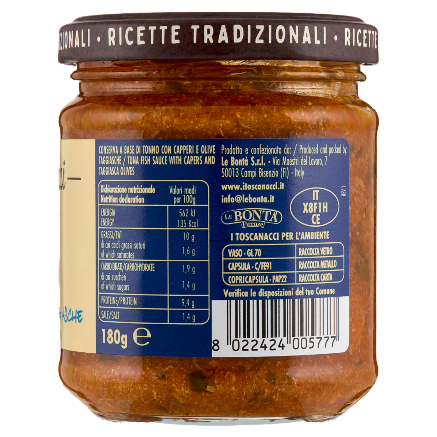 Prodotto e confezionato da: Le Bontà S.r.l. Via Maestri del Lavoro, 7 50013 Campi Bisenzio (FI) Italy