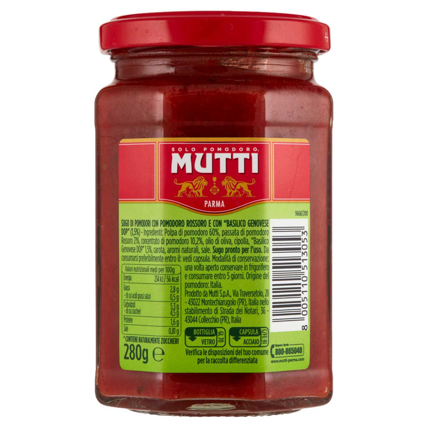 Prodotto da Mutti S.p.A. Via Traversetolo, 28 43022 Montechiarugolo (PR) Italia nello stabilimento di Strada dei Notari, 36 43044 Collecchio (PR) Italia