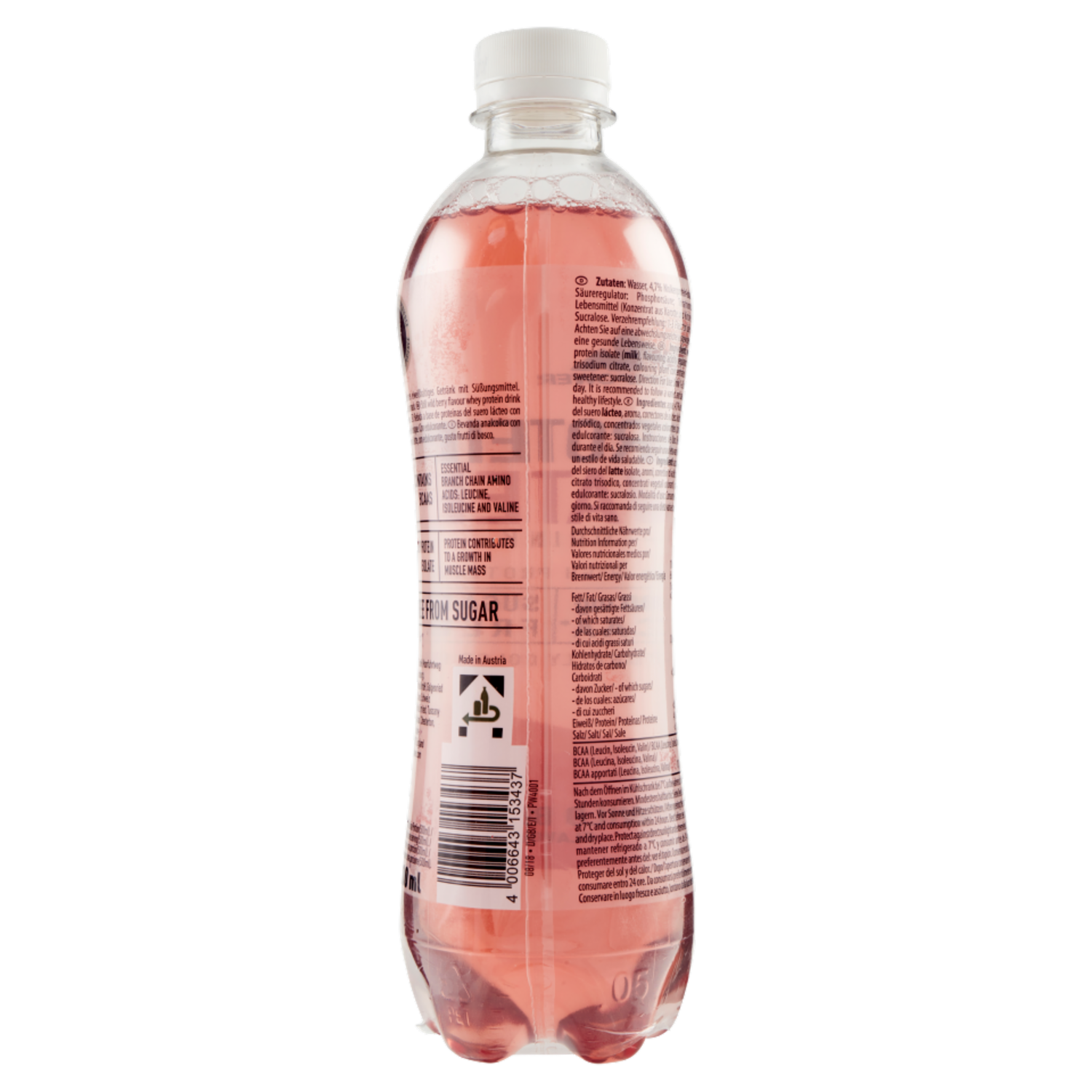 Bevanda analcolica con proteine di siero di latte, con edulcorante, gusto frutti di bosco