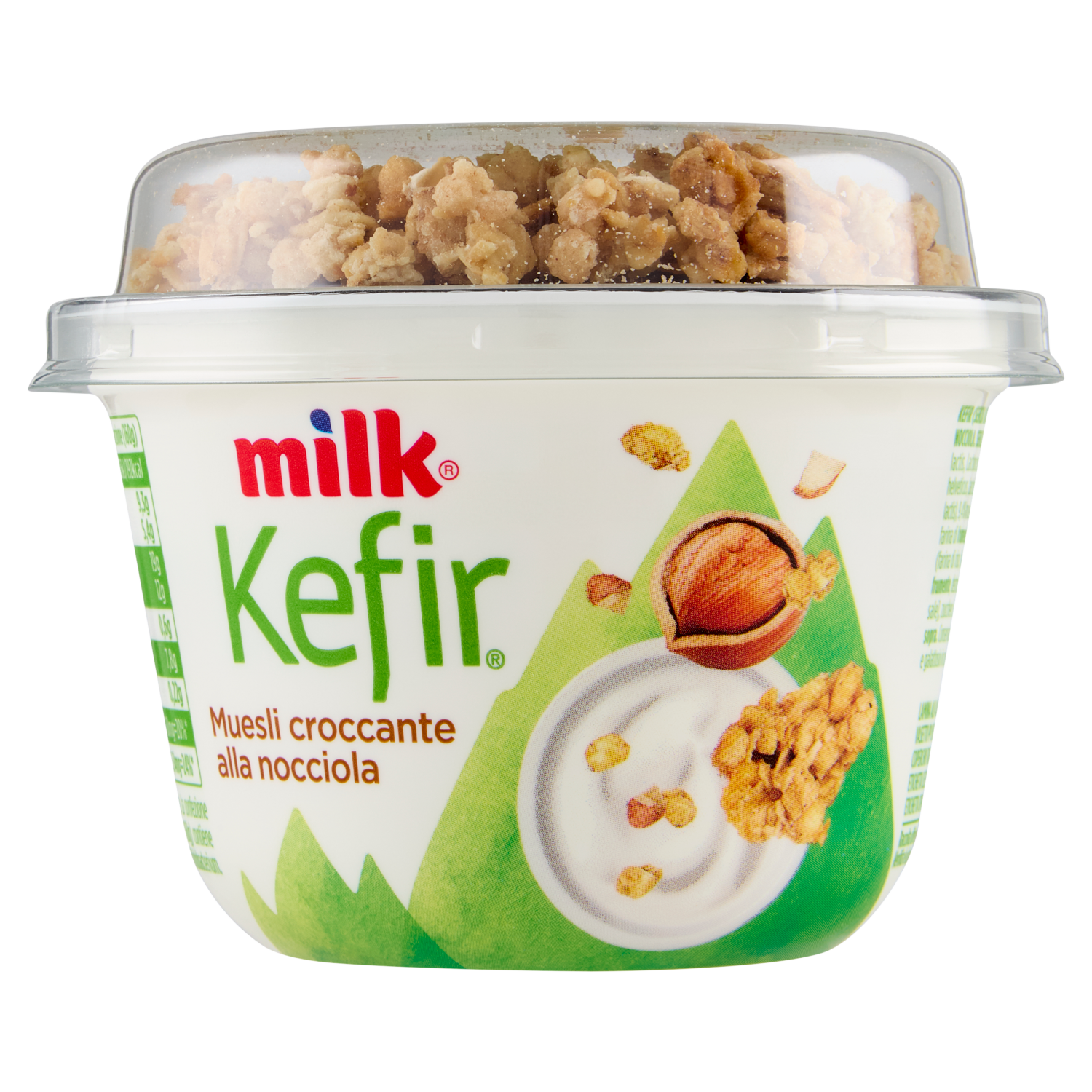 Il kefir è un particolare latte fermentato consumato da secoli nella tradizione caucasica, noto per essere considerato la bevanda dei centenari. Il termine kefir deriva da una parola armena, keif, il cui significato è proprio benessere. Kefir cremoso Milk, con crema di latte senza lattosio, muesli croccante alla nocciola ed i fermenti lattici vivi caratteristici del kefir, ti offre un piacere goloso e tutto il benessere naturale radicato in una sapiente tradizione. La vitamina B12 contribuisce alla riduzione della stanchezza e, come la vitamina A, al normale funzionamento del sistema immunitario; il calcio alla normale funzione degli enzimi digestivi. Una dieta varia ed equilibrata, esercizio fisico ed uno stile di vita attivo sono importanti per la salute. Il prodotto contiene glucosio e galattosio in conseguenza della scissione del lattosio.