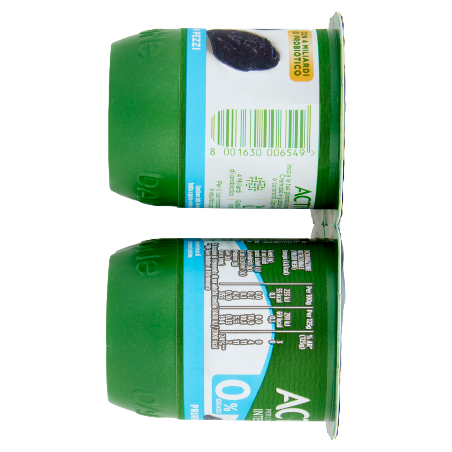 Latte scremato fermentato e preparato di prugne dolcificato con fruttosio ed edulcoranti