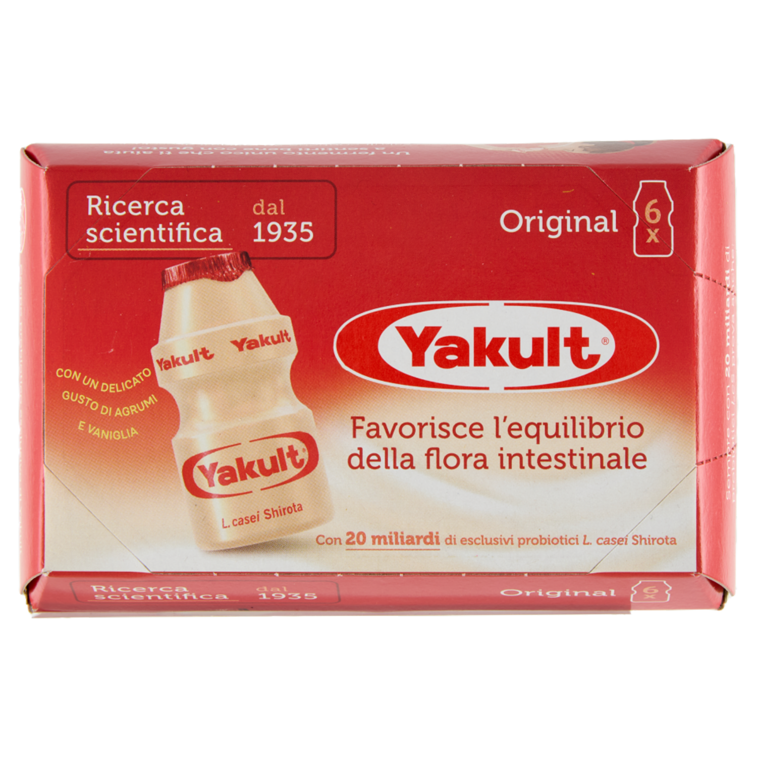 Un fermento unico che ti aiuta a sentirti bene con gusto! Yakult contiene 20 miliardi di esclusivi fermenti probiotici L. casei Shirota tanto resistenti da superare la barriera gastrica e arrivare vivi nell'intestino, favorendo così l'equilibrio della flora intestinale. È adatto a tutti*, in ogni momento della giornata! *Ad eccezione di persone allergiche al latte vaccino e bambini che non assumono ancora una dieta diversificata. Yakult è una bevanda di latte scremato fermentato con un delicato gusto di agrumi e vaniglia - Ceppo probiotico unico ed esclusivo di Yakult - 0% di grassi - Senza glutine