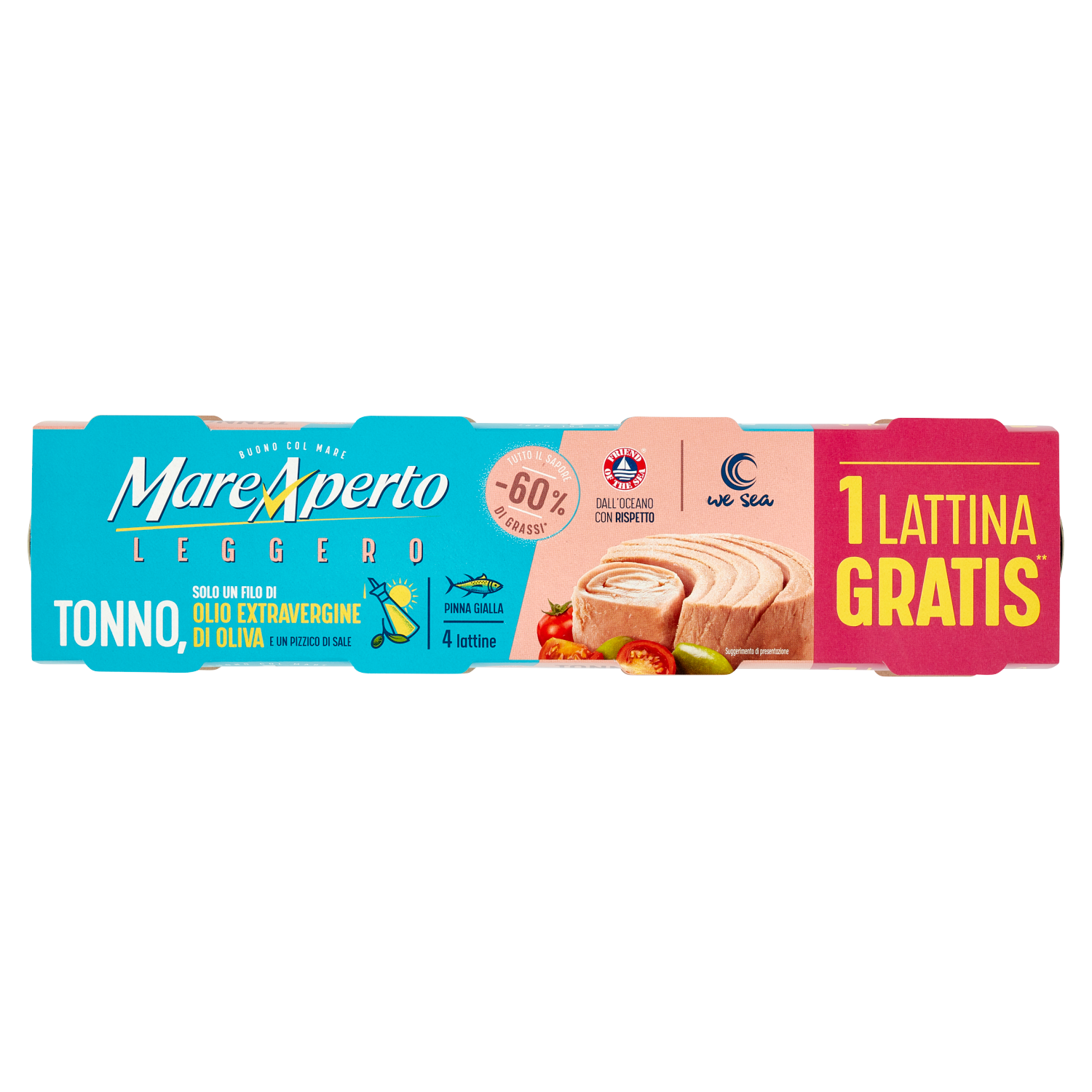 Mare Aperto Leggero Tonno, Solo un Filo di Olio Extravergine di Oliva 3 +1 x 60g