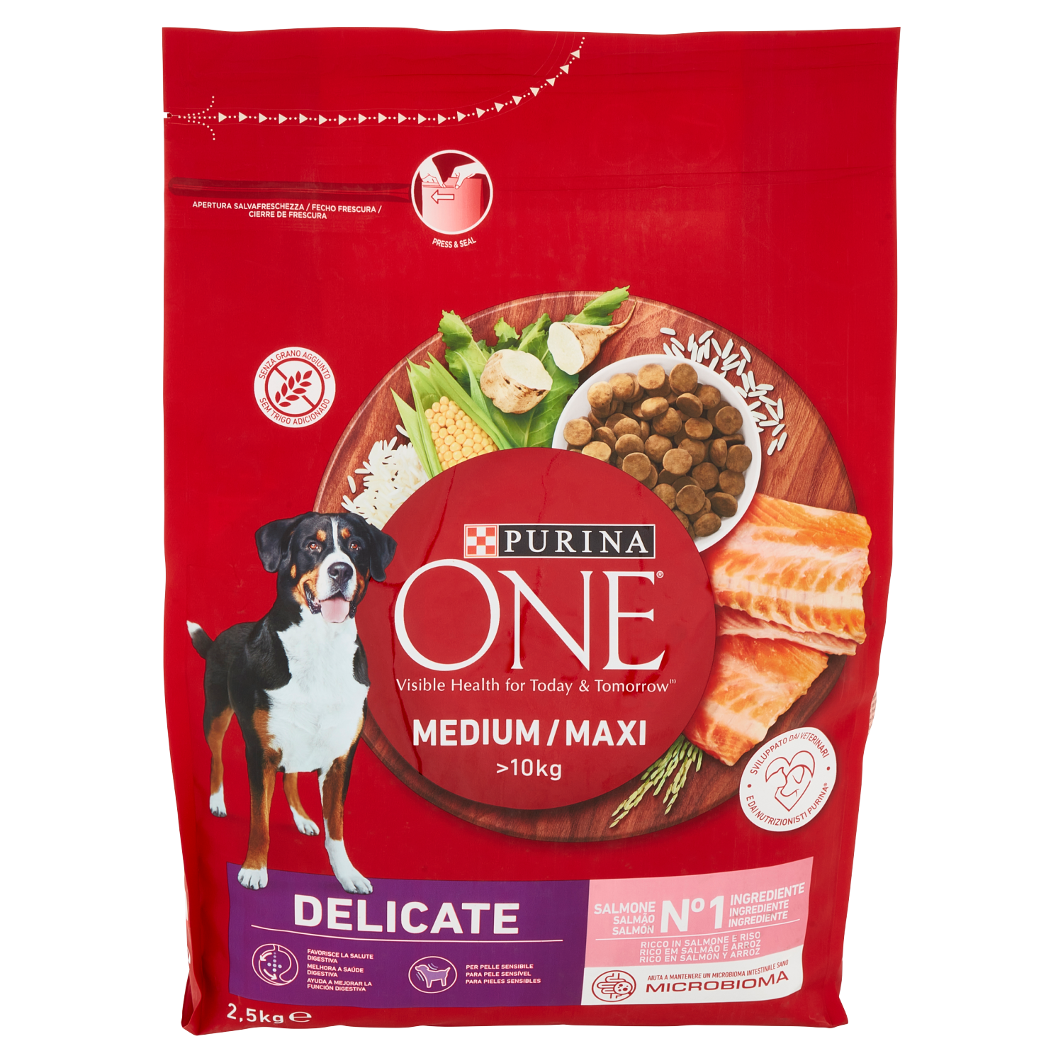 PURINA ONE Medium / Maxi Delicate Ricco in Salmone e Riso 2,5 kg