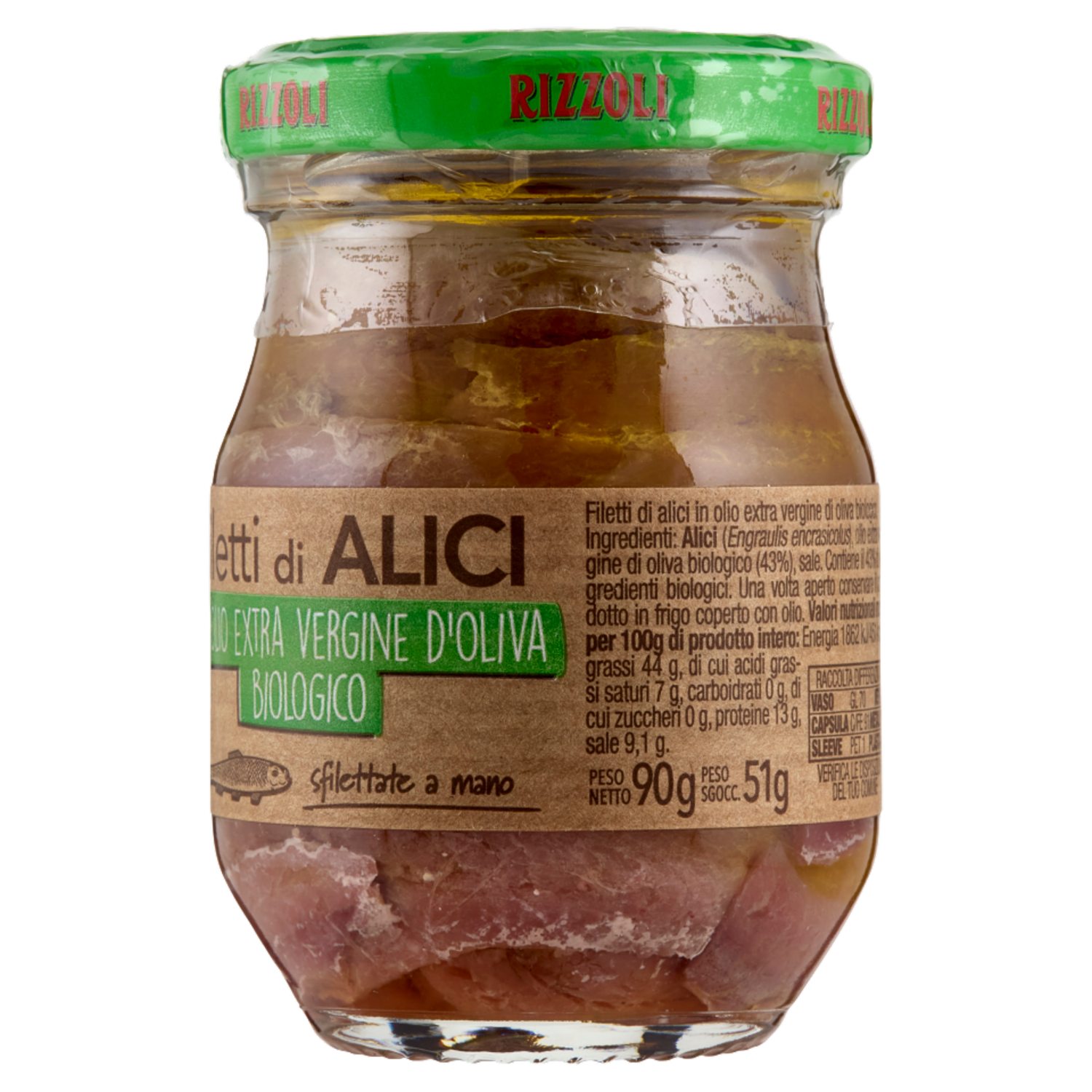 Rizzoli Filetti di Alici in Olio Extra Vergine d'Oliva Biologico 90 g