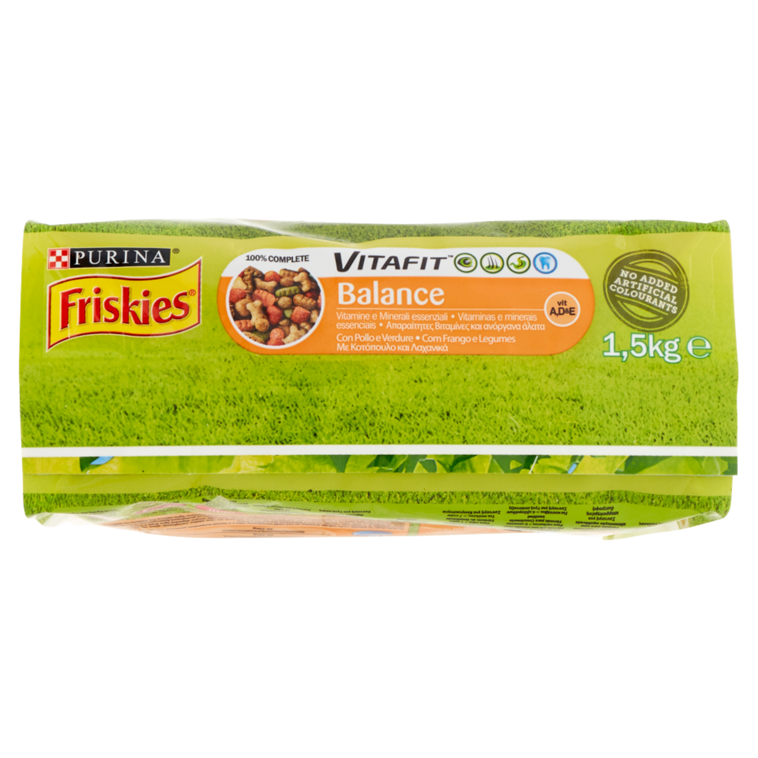 PURINA FRISKIES Cane Secco Crocchette Vitafit Balance con Pollo e Verdure aggiunte Sacco 1,5 kg