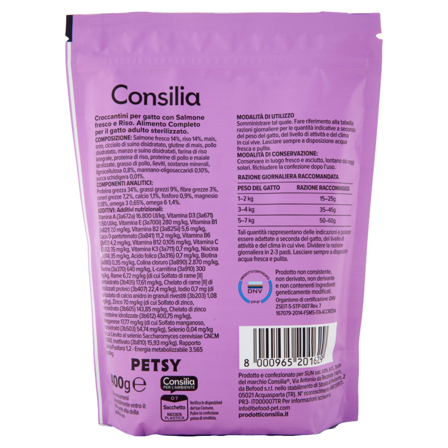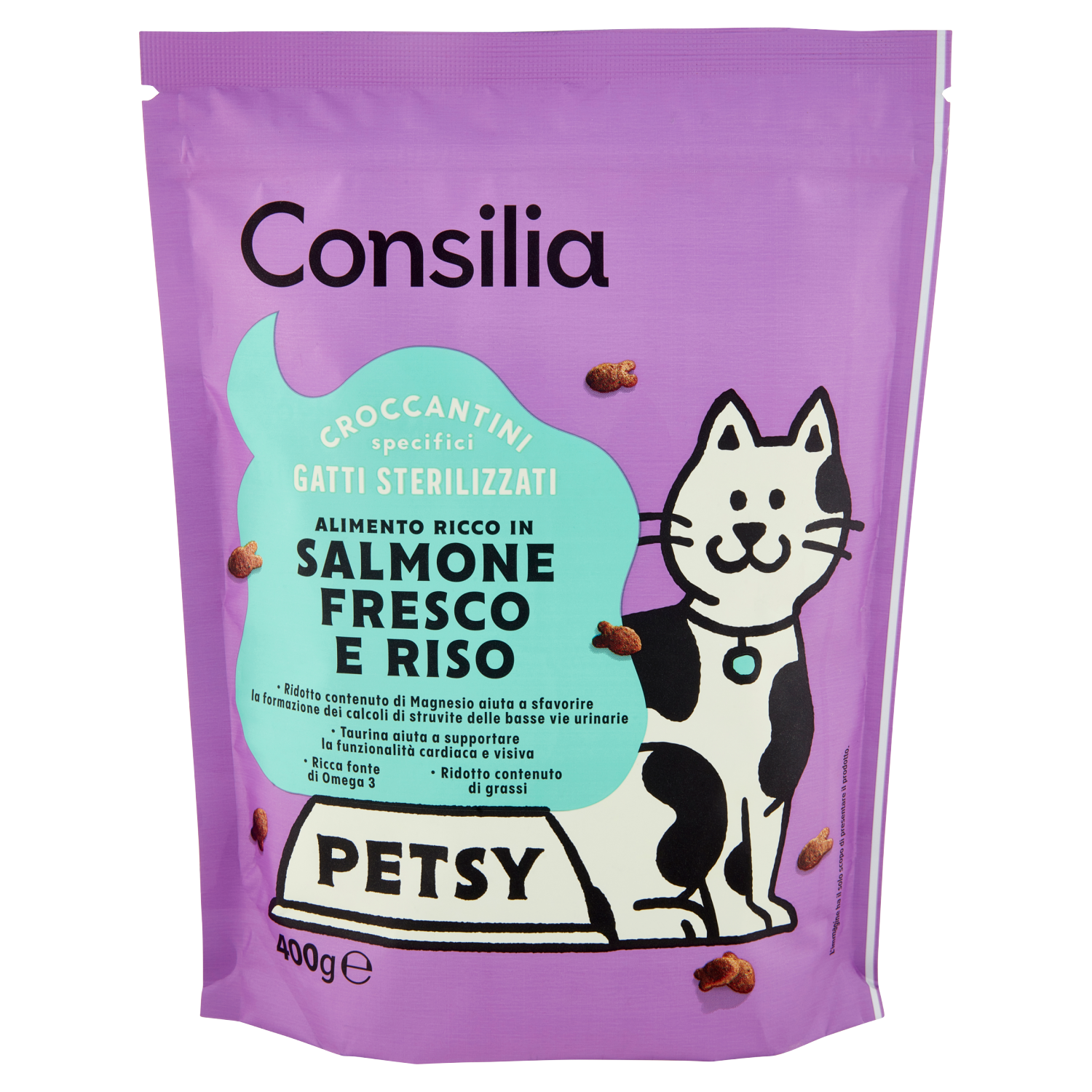 Consilia Petsy Gatto Sterilizzato Croccantini con Salmone Fresco e Riso 400 g