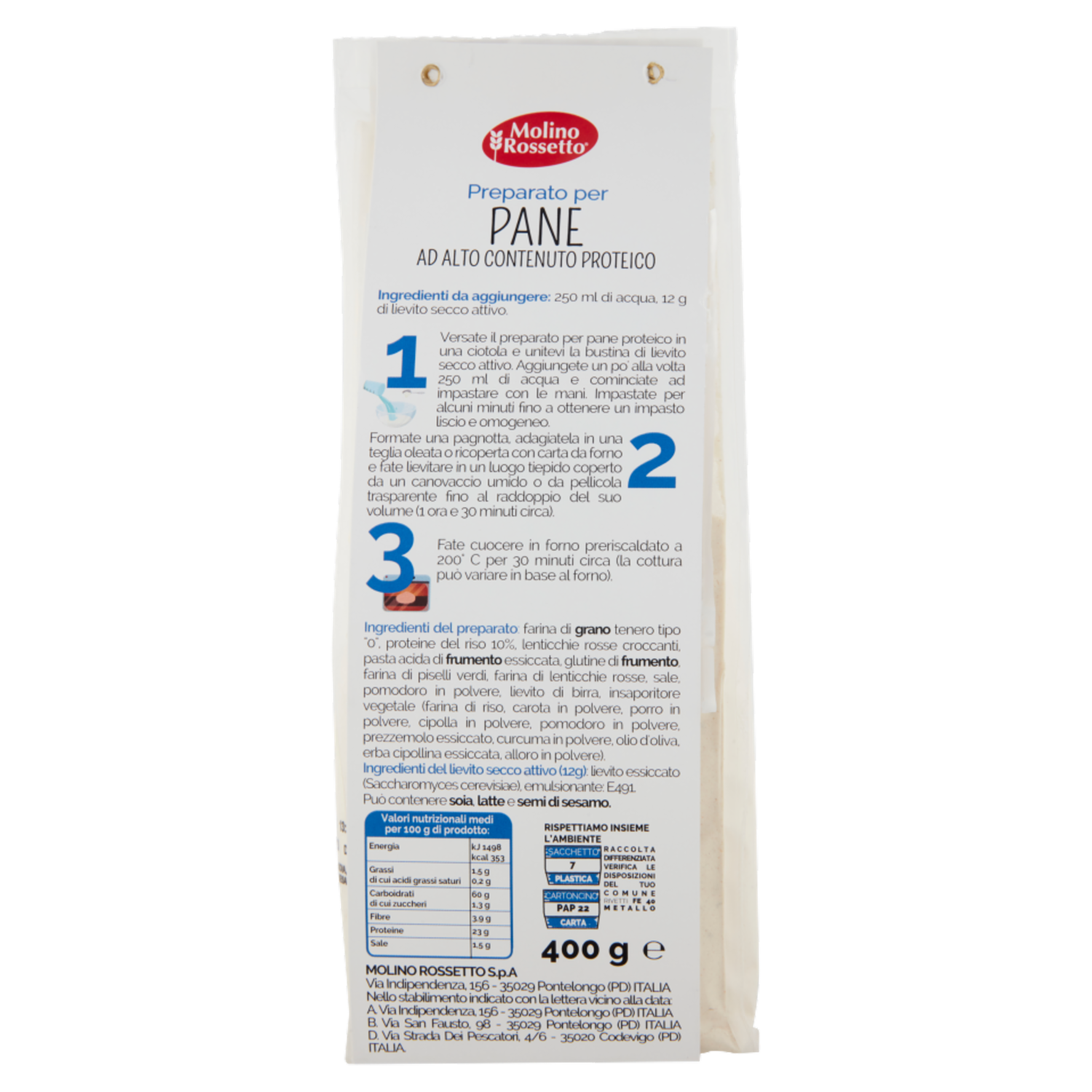 Molino Rossetto Pro+ Pane + Proteine 400 g