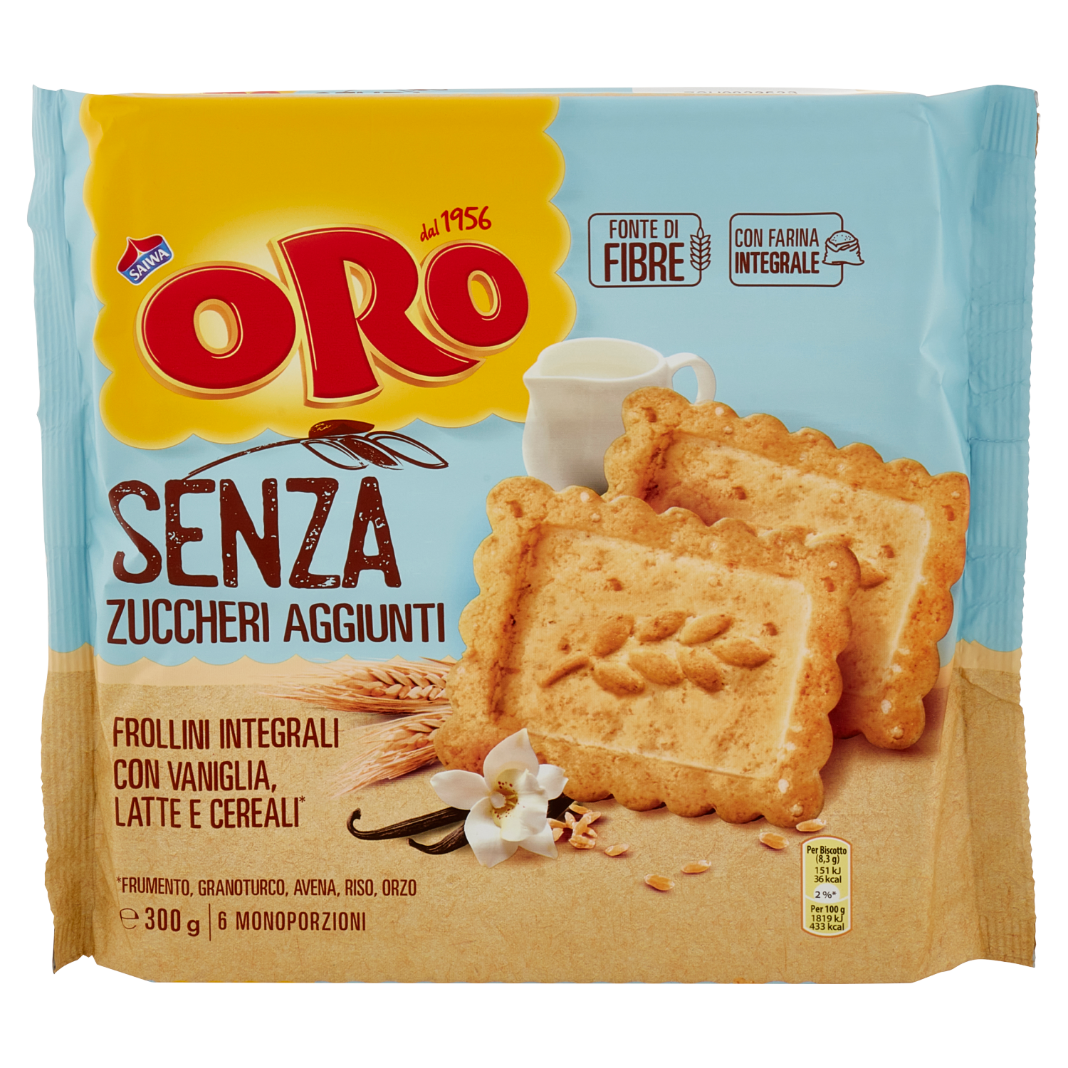 Oro Saiwa biscotti integrali con vaniglia, latte e cereali Senza Zuccheri aggiunti - 300 g