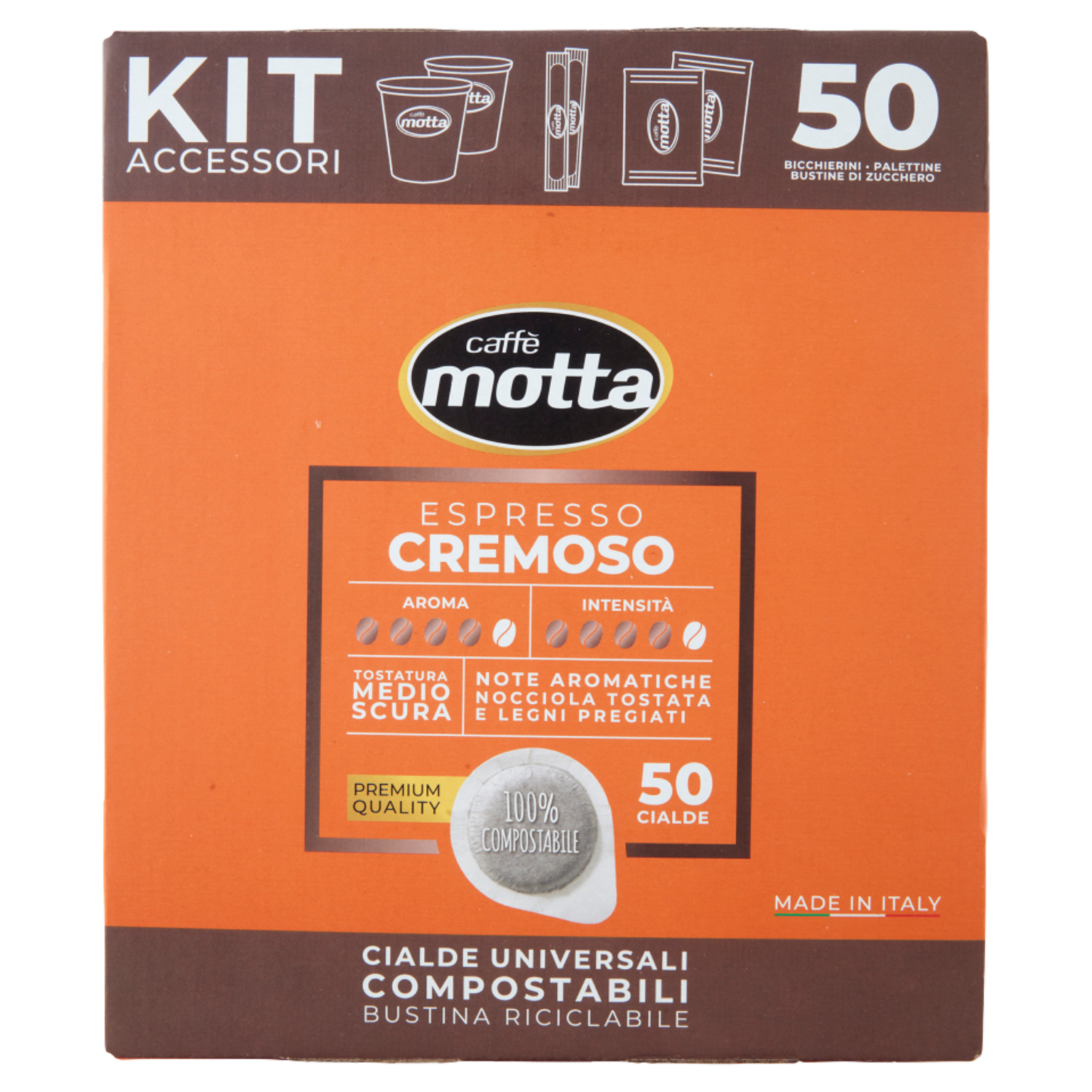 caffè motta Espresso Cremoso Kit Accessori + Cialde Universali Compostabili 50 x 7 g