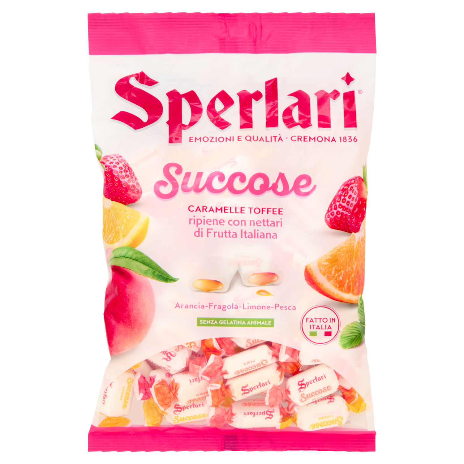 Sperlari Succose Toffee Ripiene con nettare di Arancia, Fragola, Limone e Pesca Italiani 350 g