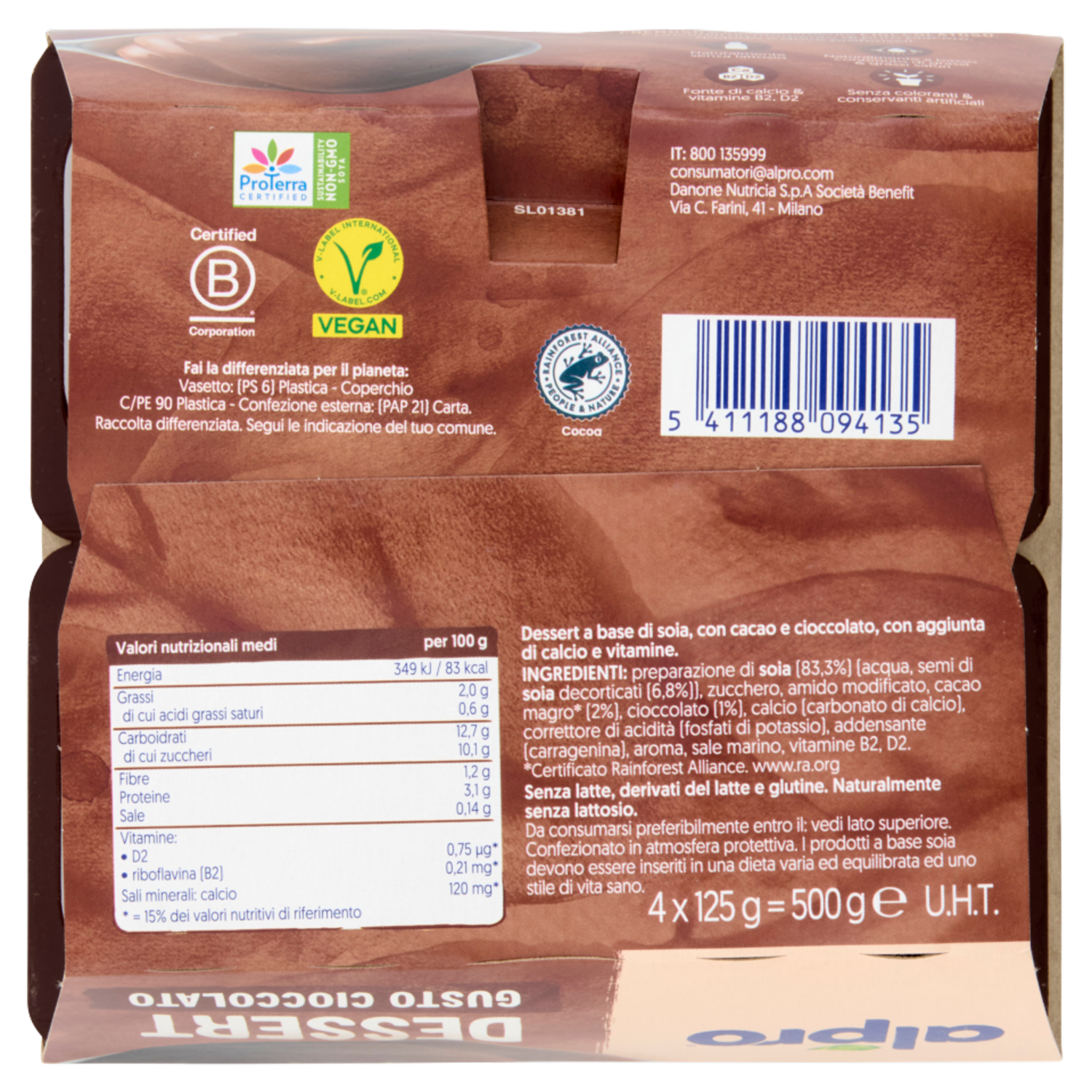 alpro Dessert 100% Vegetale al gusto Cioccolato 4x125 g