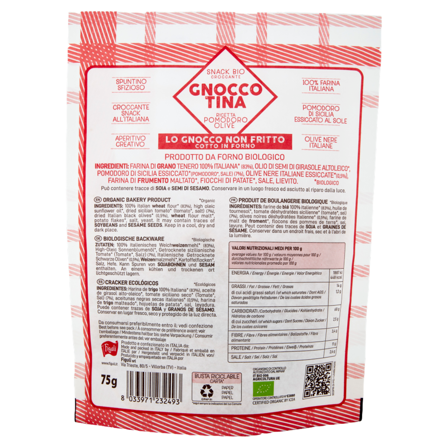 Figulì Gnoccotina Snack Ricetta Pomodoro e Olive Bio 75 g