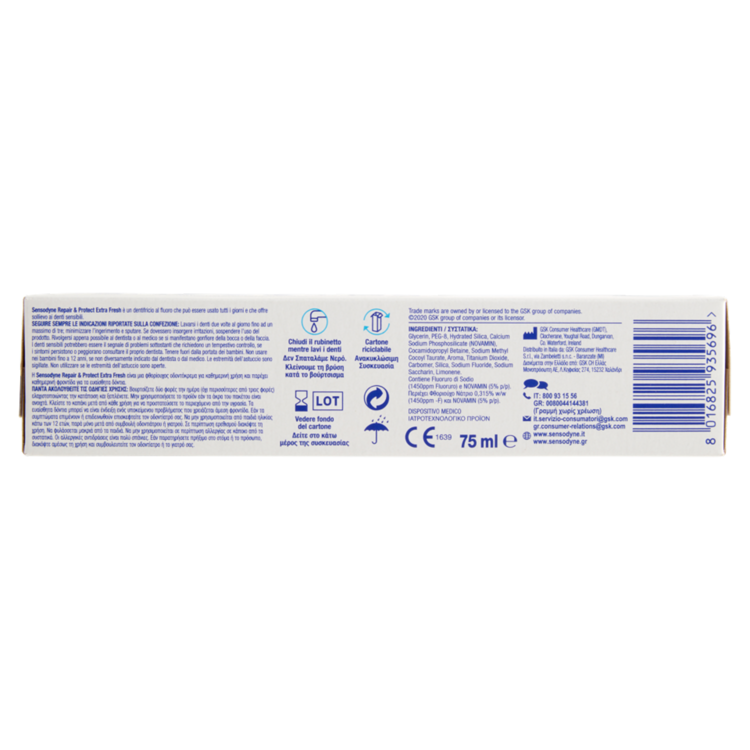Sensodyne dentifricio repair&protect extra fresh con formulazione a base di calcio 75ml