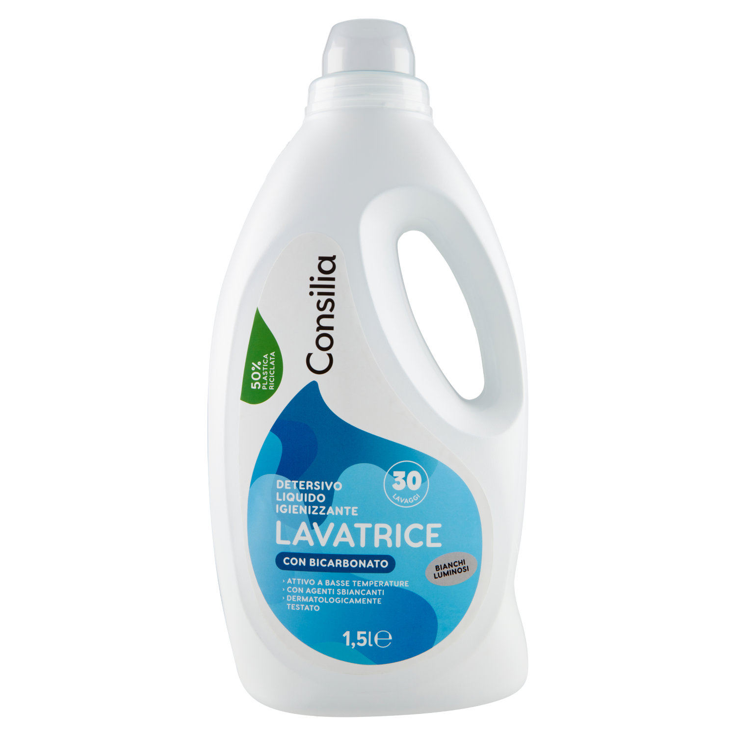 Consilia Detersivo per Lavatrice Liquido Igienizzante con Bicarbonato 30 Lavaggi 1,5 L