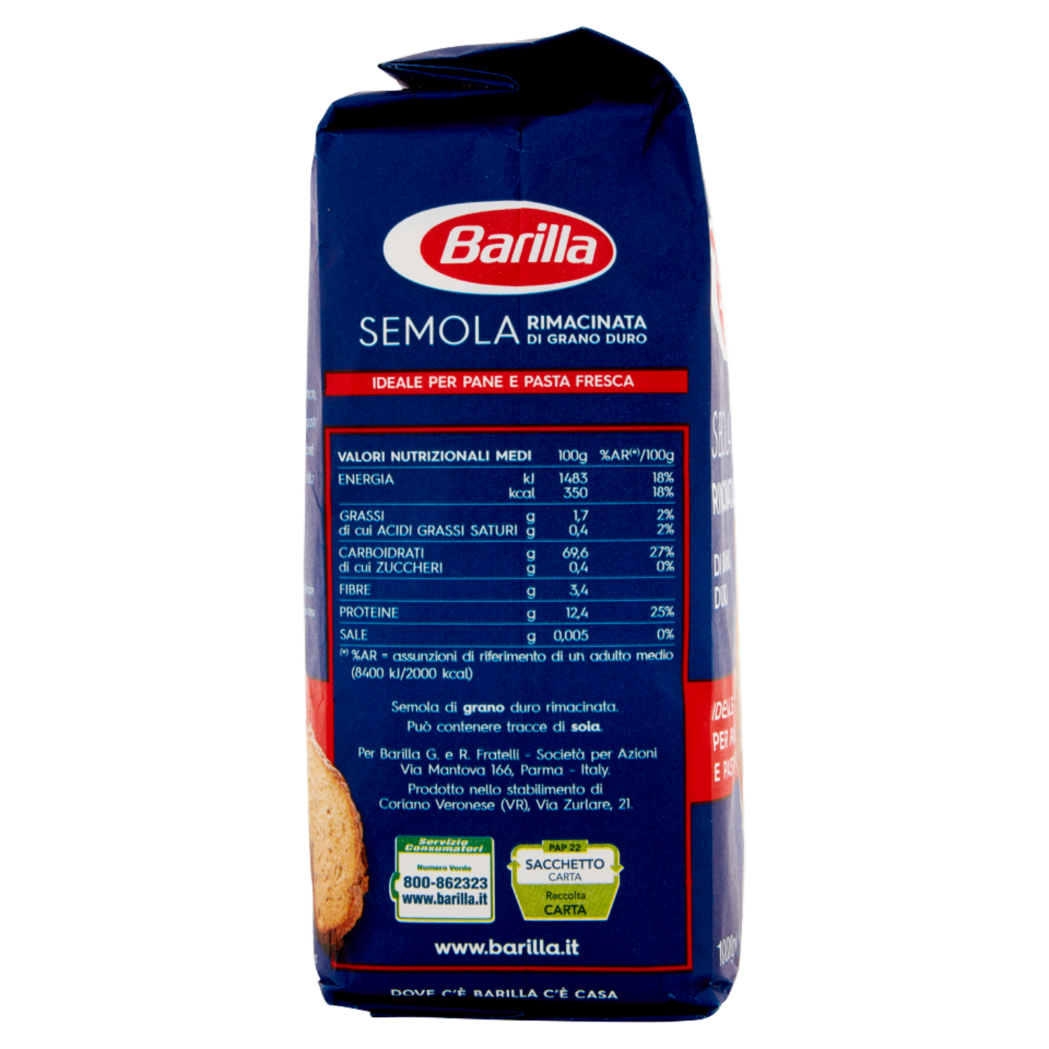 Barilla Semola Rimacinata Grano Duro Ideale per Pane e Pasta Fresca 1000g