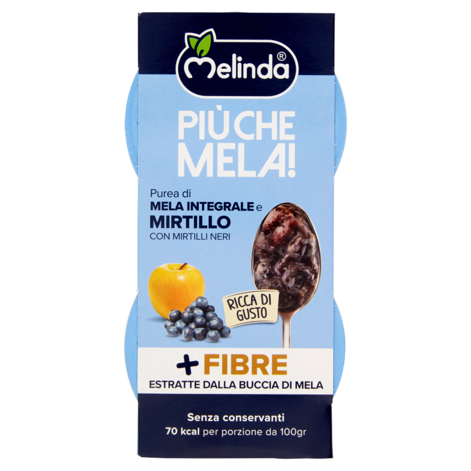 Melinda Più che Mela! Mousse di Golden Delicious e Mirtillo con Mirtilli Neri Interi 2 x 100 g