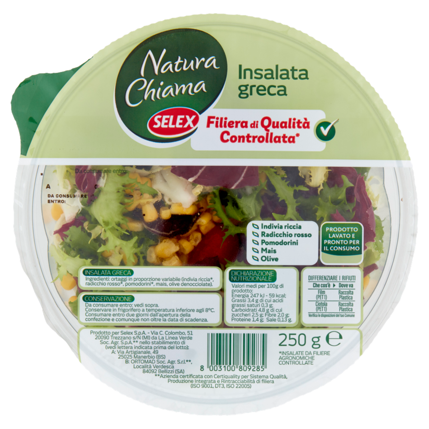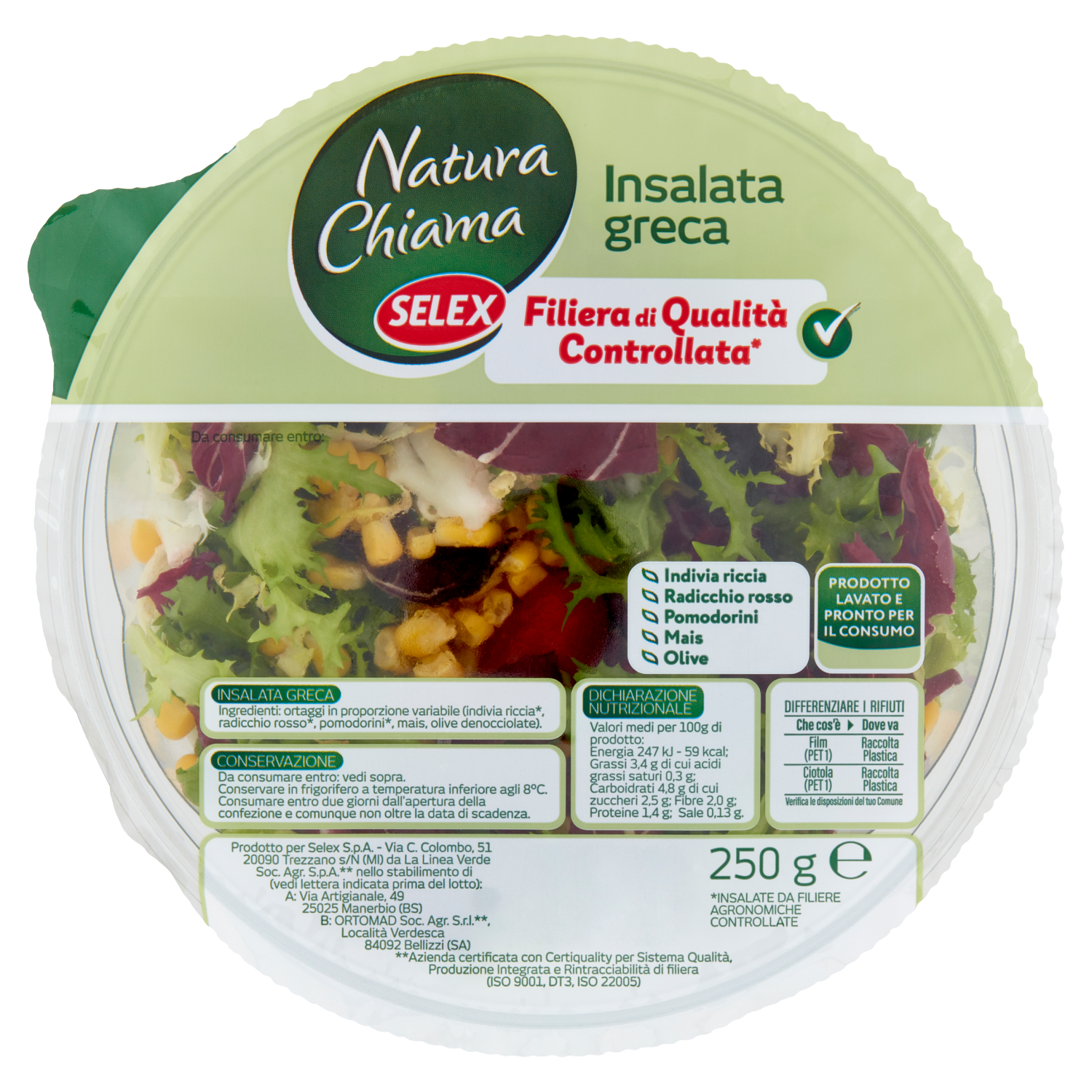 Selex Natura Chiama Insalata Greca Lavata e Pronta per il Consumo 250 g