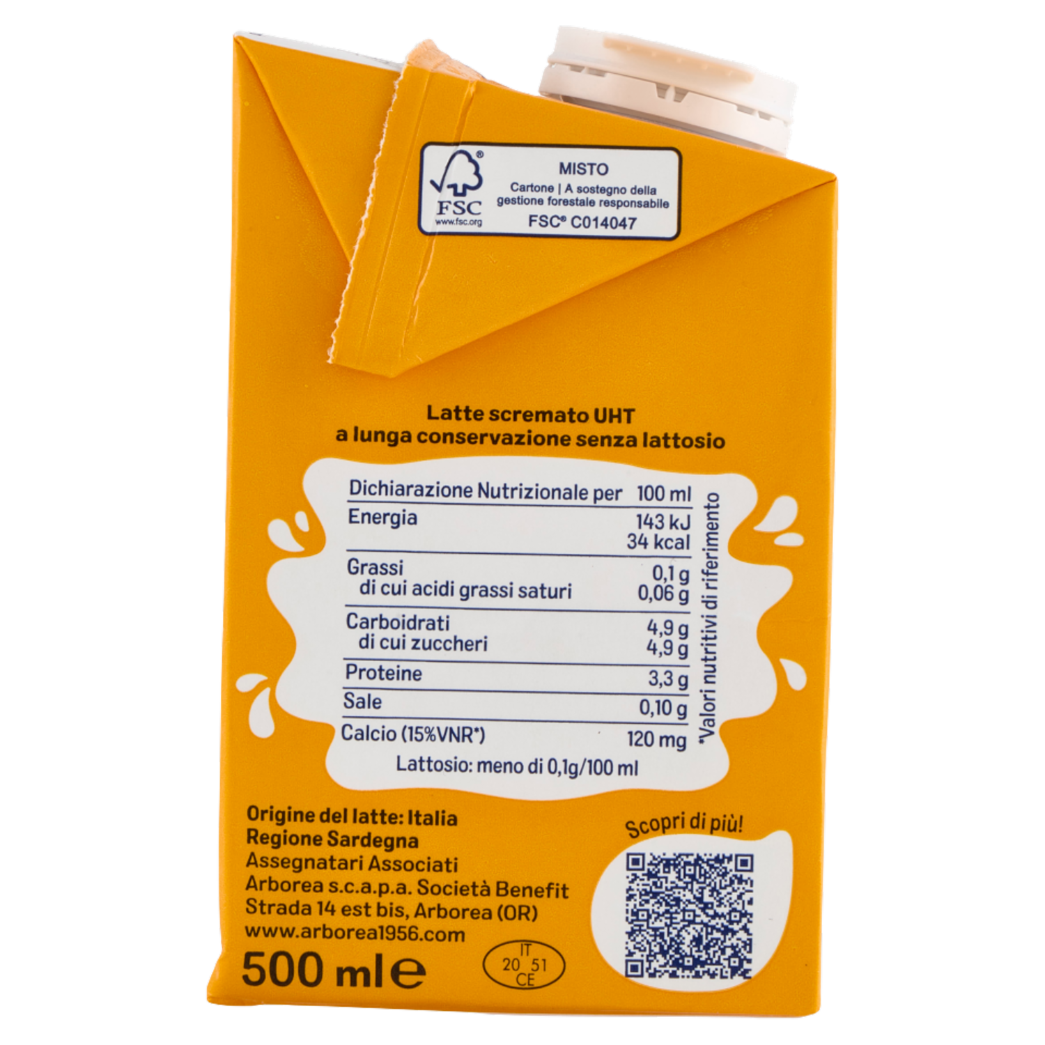 Arborea Ad Latte Scremato ad Alta Digeribilità Zero Grassi Senza Lattosio 500 ml