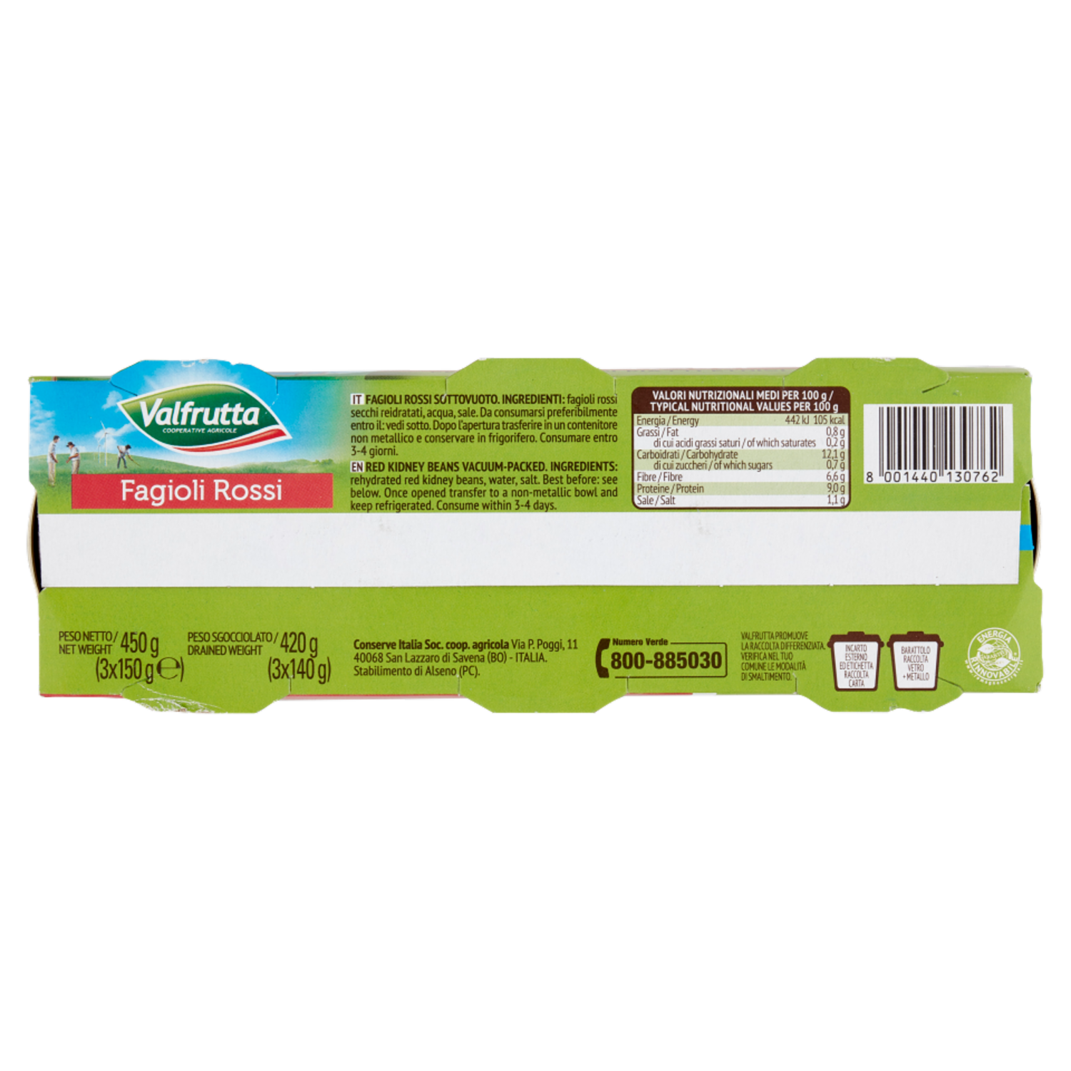 Valfrutta Cotti a Vapore Fagioli Rossi 3 x 150 g