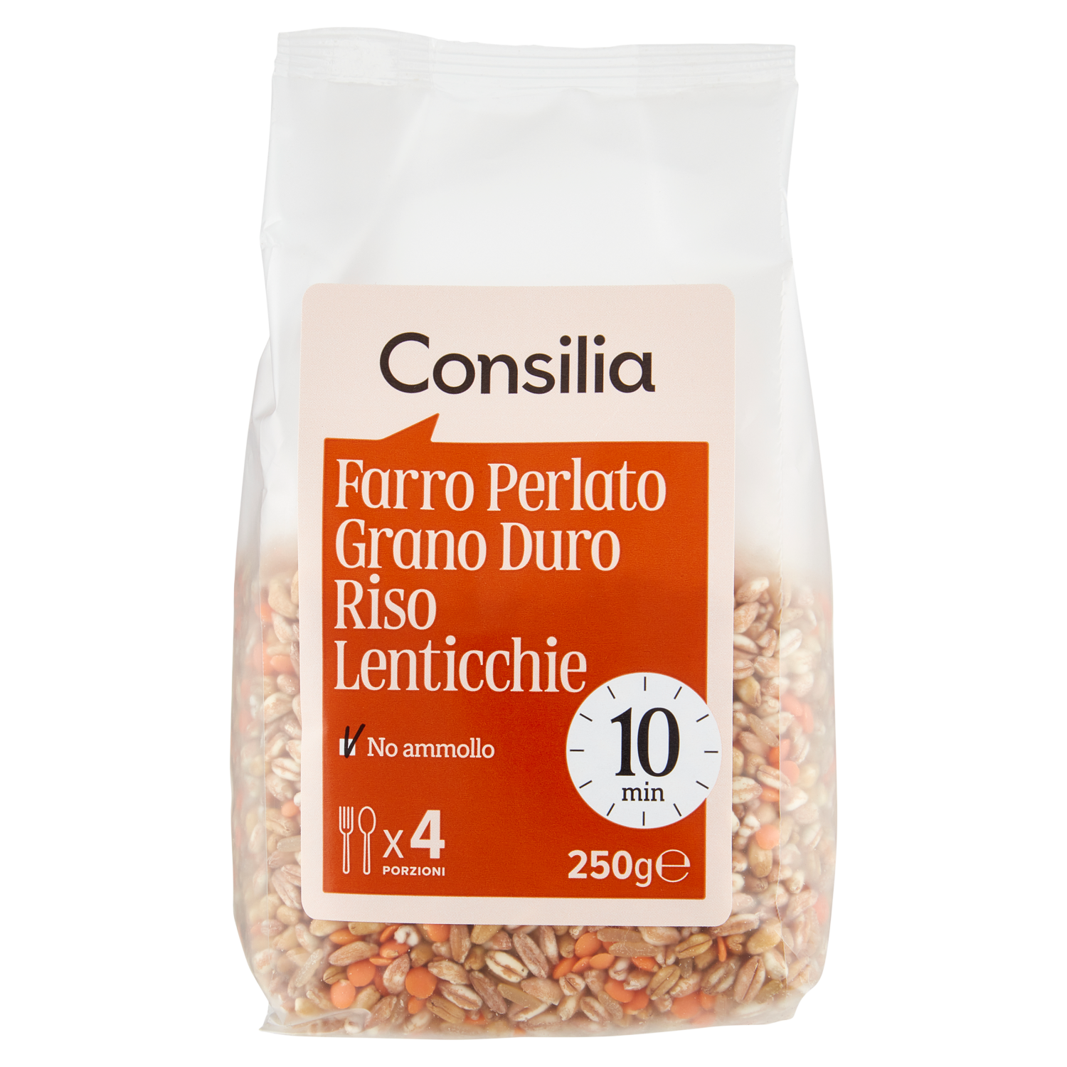 Consilia Cereali e Legumi Secchi Misto Farro Perlato, Grano Duro, Riso Thai e Lenticchie 250 g