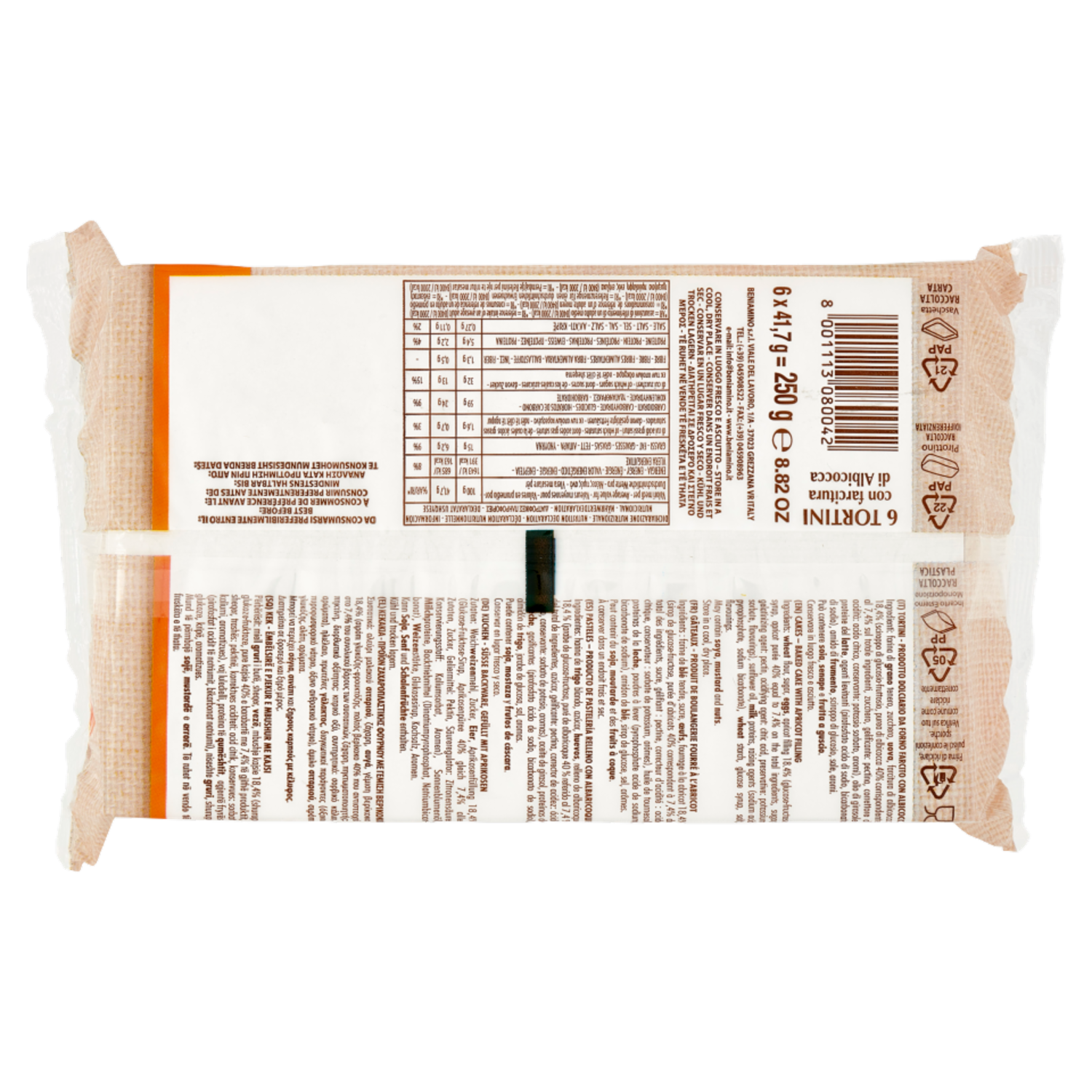 Beniamino Tortini con farcitura di Albicocca 6 x 41,7 g